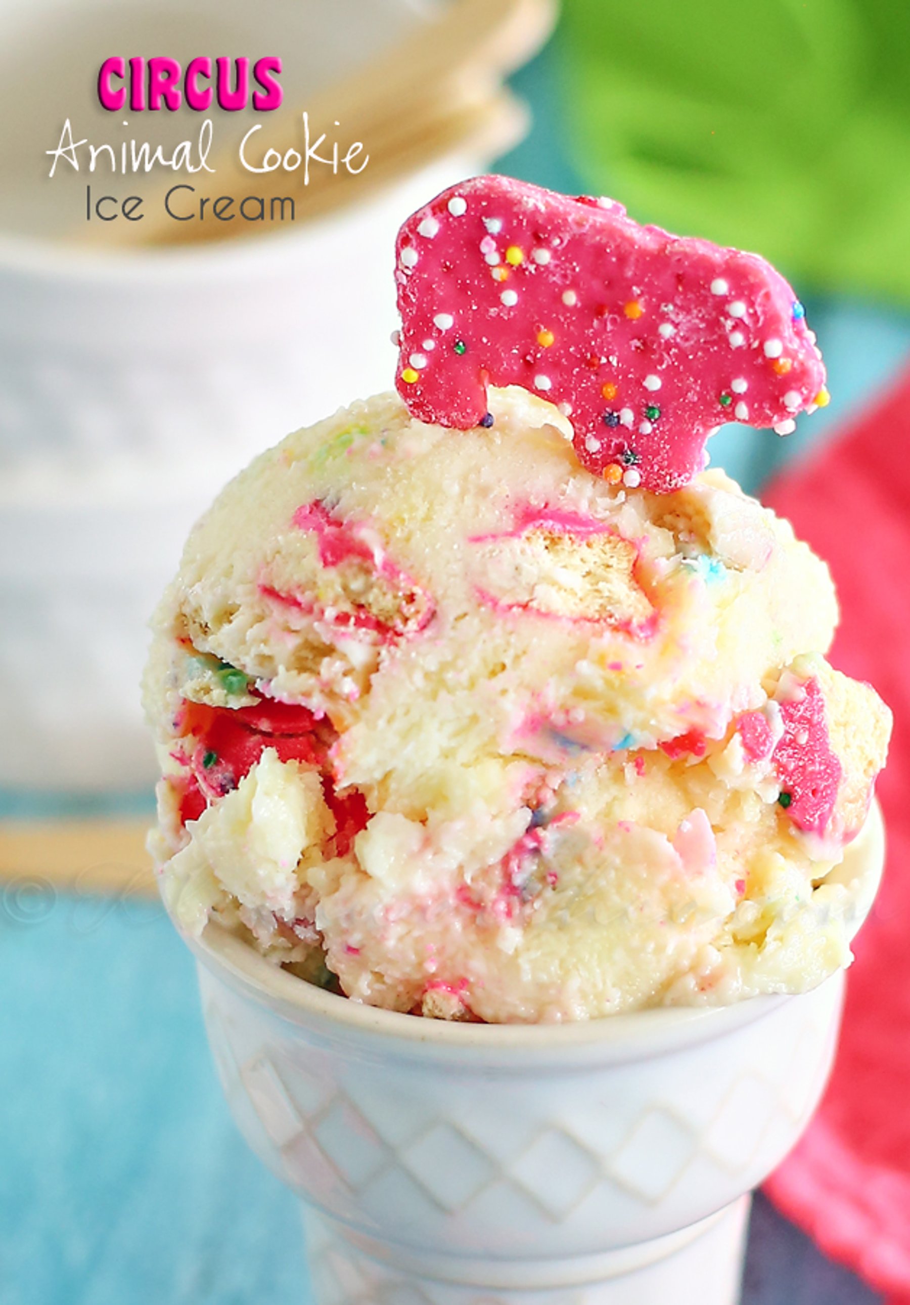 This Circus Animal Cookie Ice Cream is a simple, no churn recipe that will bring back all those great childhood memories with those colorful, fudge covered cookies.