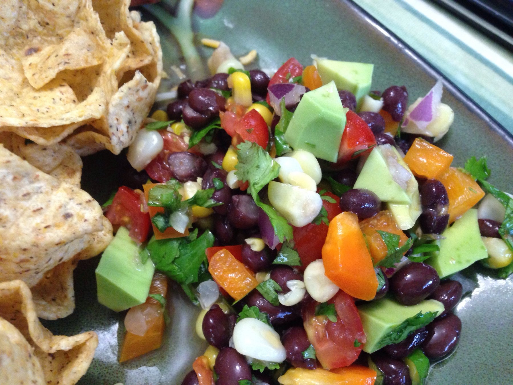 Make the dressing: in a small bowl, whisk together all ingredients until agave is incorporated. Set aside. In a separate bowl, combine the beans, tomato, corn, red onion, bell pepper, and roughly chopped...