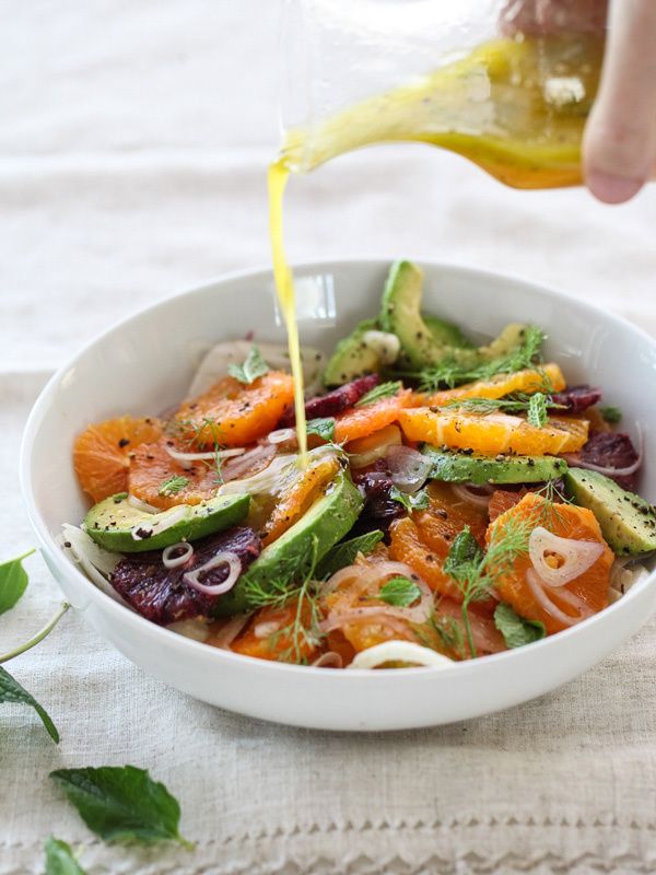 - Slice the peels off of the citrus and place in a bowl or on a serving plate. Layer with thinly slivered fennel slices. Add avocado slices and shallot slivers.