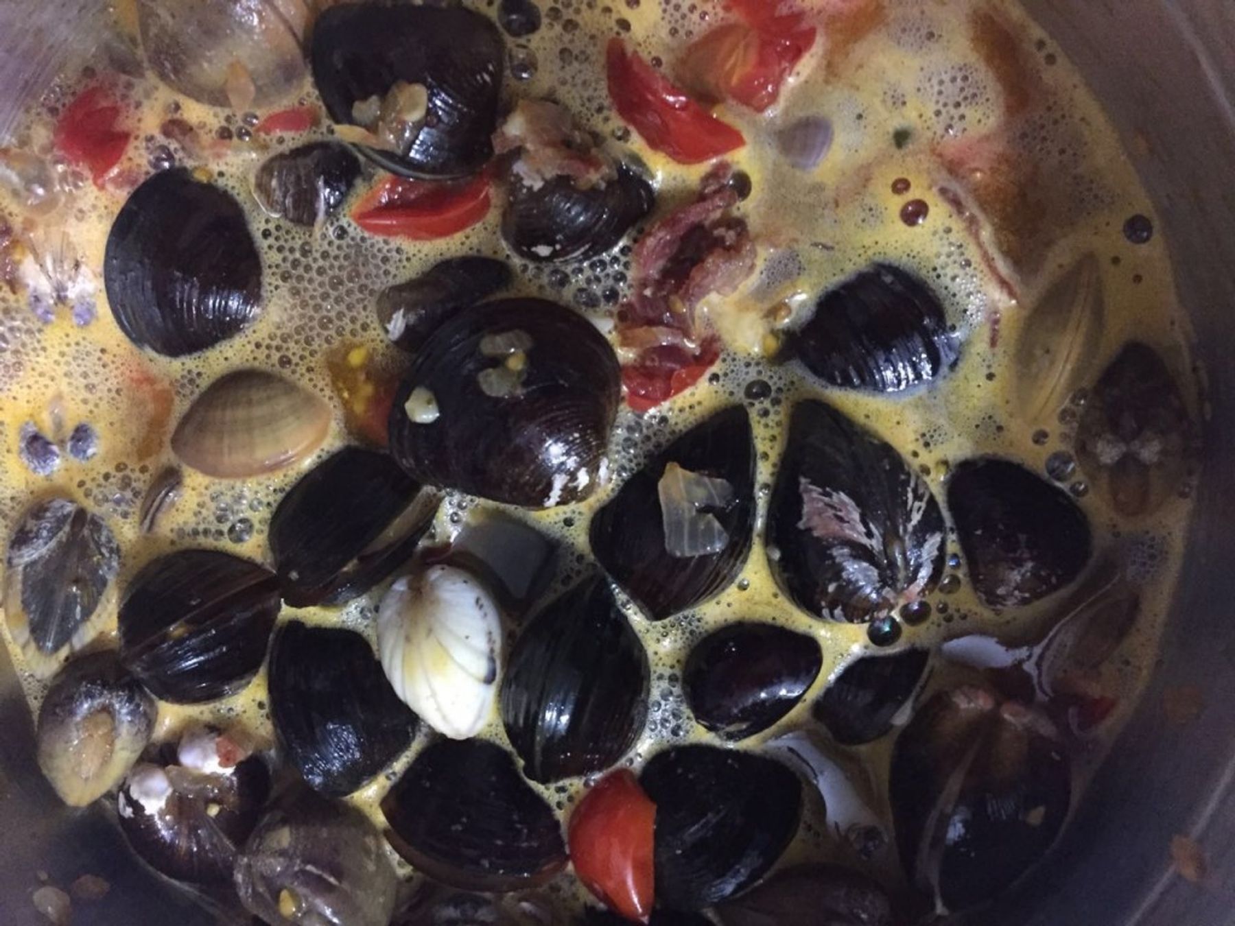 Clam With Cherry Tomatoes, Bacon And White Wine