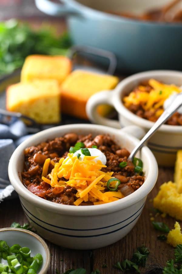 Your search for the best chili recipe stops here! With just the right amount of zesty seasoning, this simple and easy beef chili recipe is thick, rich and incredibly flavorful. Serve it with a side of cornbread for the ultimate family-friendly dinner!