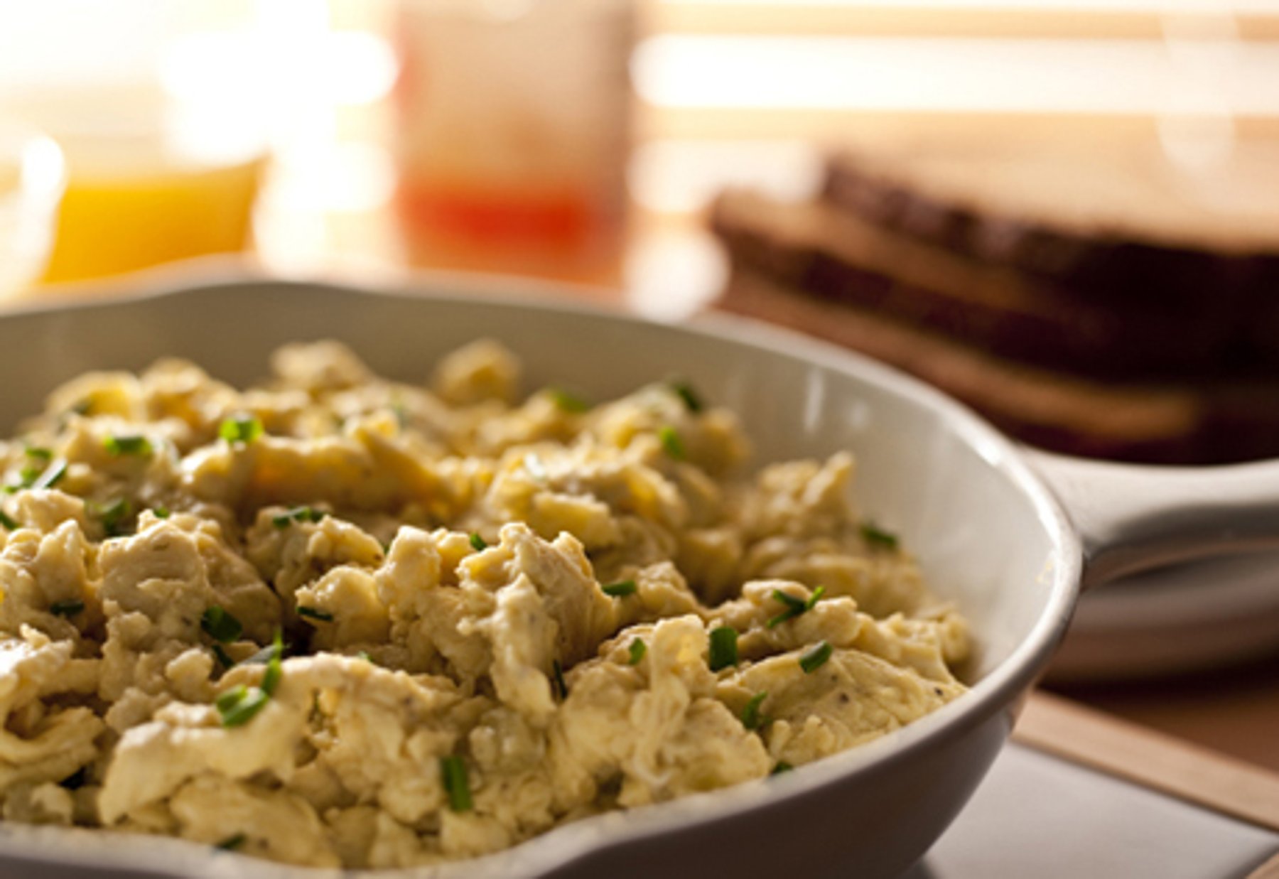 The secret to these extra-creamy scrambled eggs is the addition of cream of celery soup beaten into the eggs before cooking.