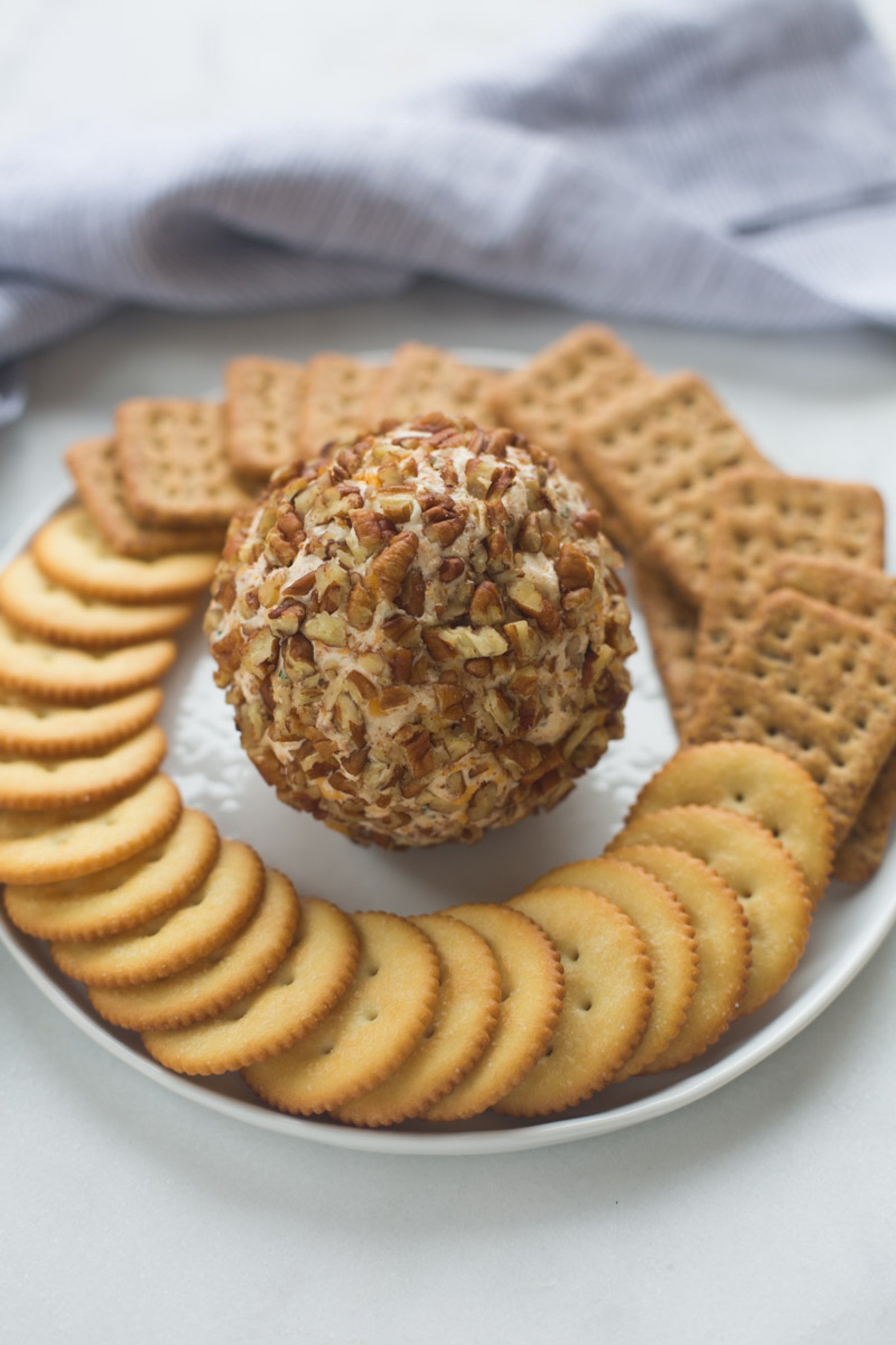 Classic Cheese Ball recipe made with real cheddar cheese, cream cheese, green onion and coated in chopped pecans. The BEST easy holiday appetizer that everyone loves!