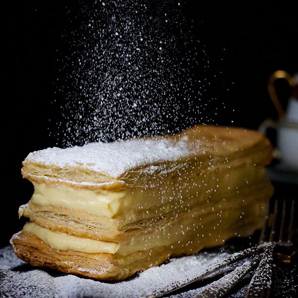 Layers of flaky French pastry and perfect vanilla pastry cream come together in this popular, decadent cream pastry, also known as a Mille Feuille. Get the recipe: ofbatteranddough.com