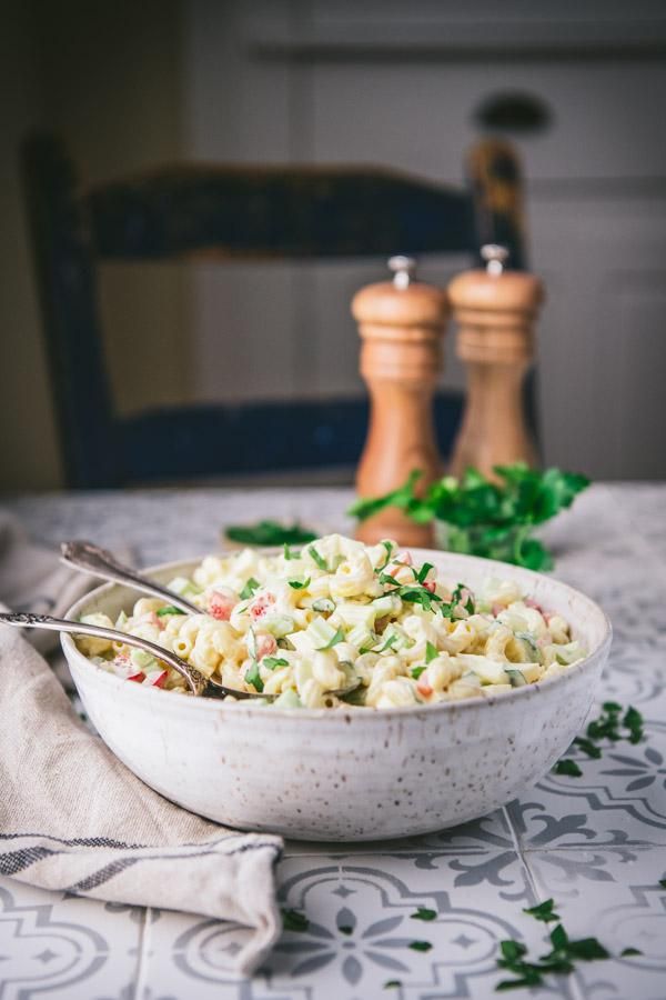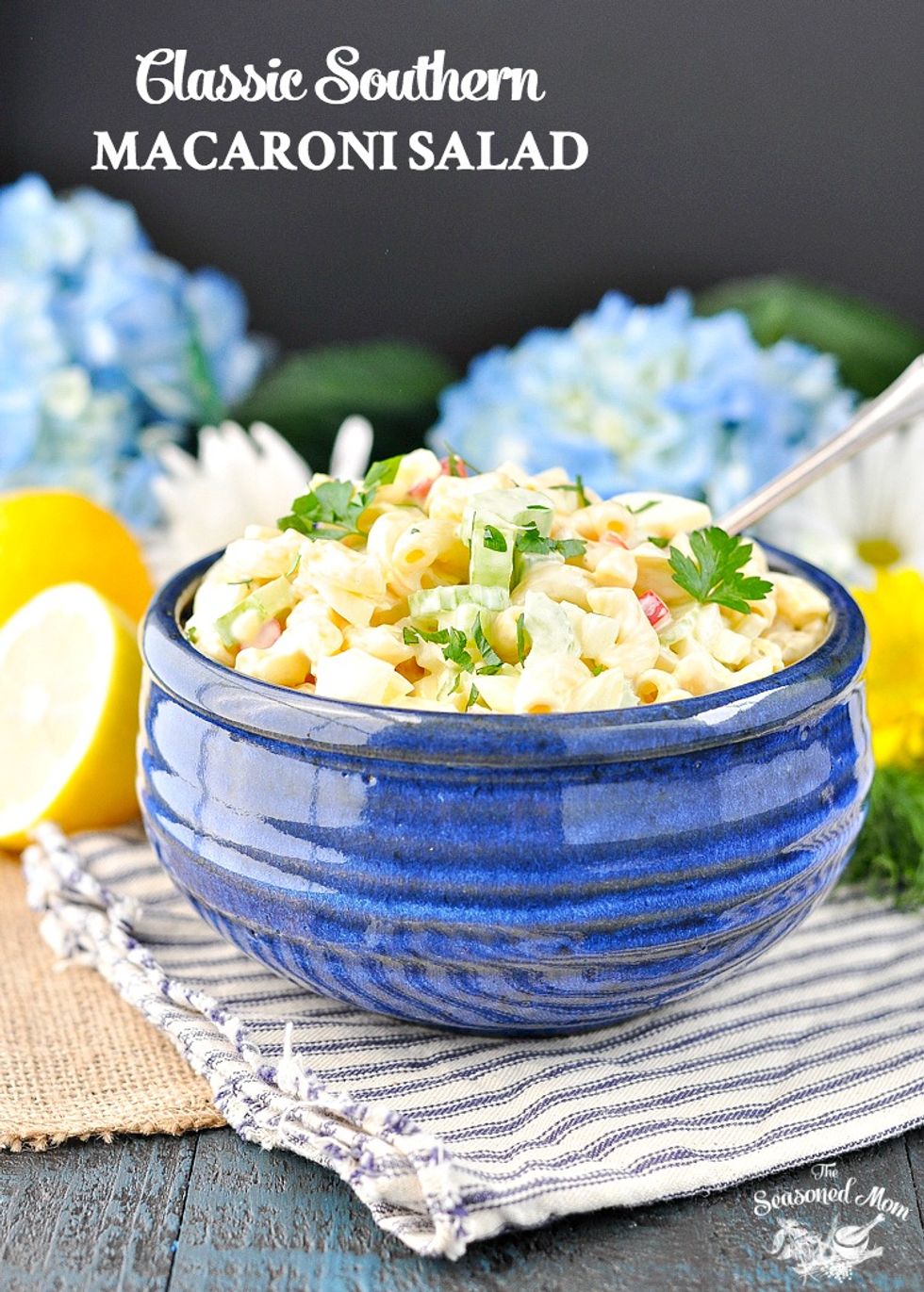Nothing tastes better alongside grilled hamburgers and hotdogs, fried chicken, steak, or bbq chicken sandwiches than a cool and creamy Southern macaroni salad! With elbow pasta, crisp veggies, hardboiled eggs, and a sweet-and-tangy mayonnaise-based dressing, this easy side dish recipe comes together in minutes. File it away for your next cookout or potluck -- the delicious pasta salad always wins rave reviews!