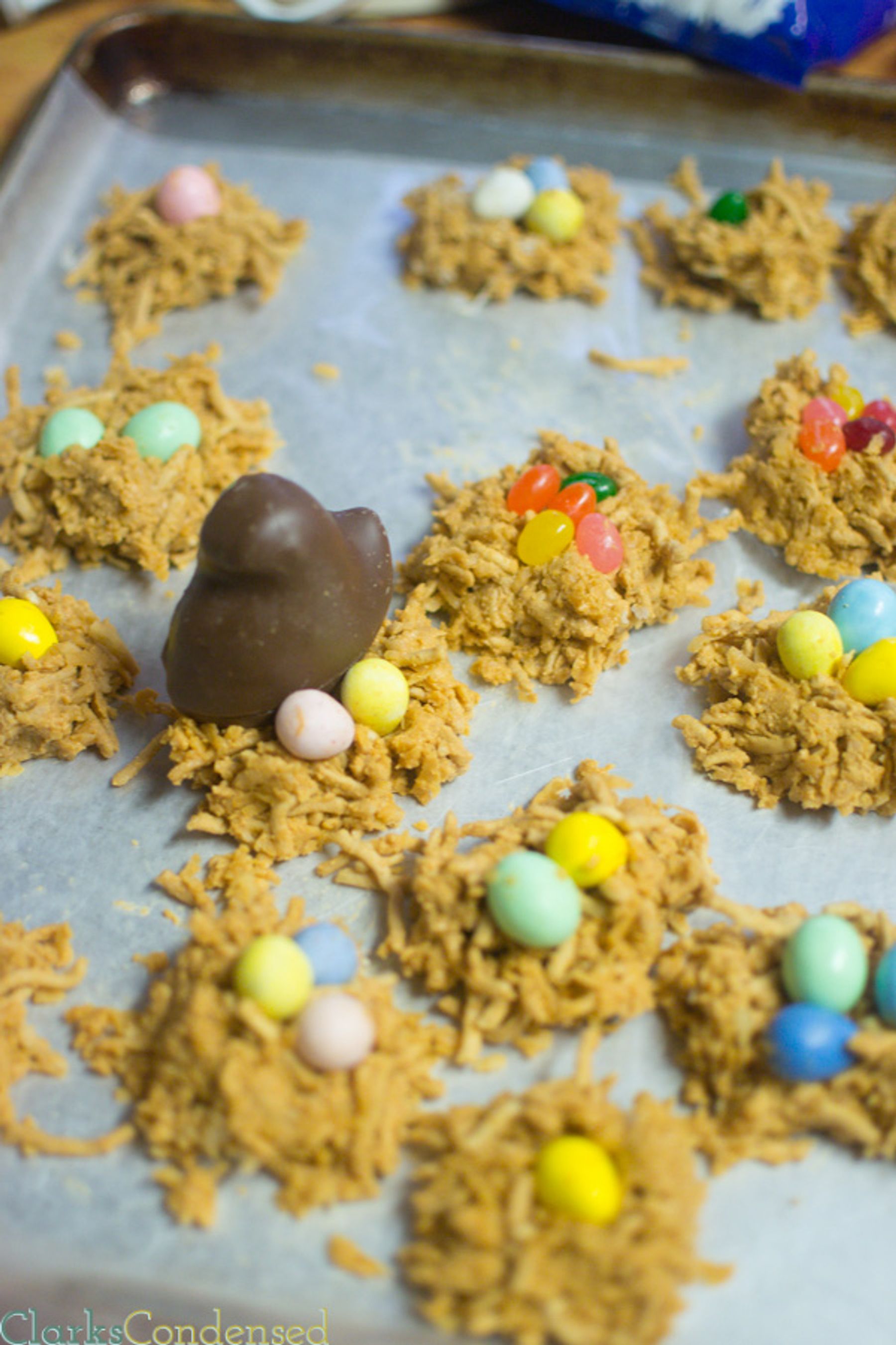 A fun Easter treat and activity for kids and adults alike. You can use whatever type of 'eggs' you would like, and you could even throw some Peeps on top.