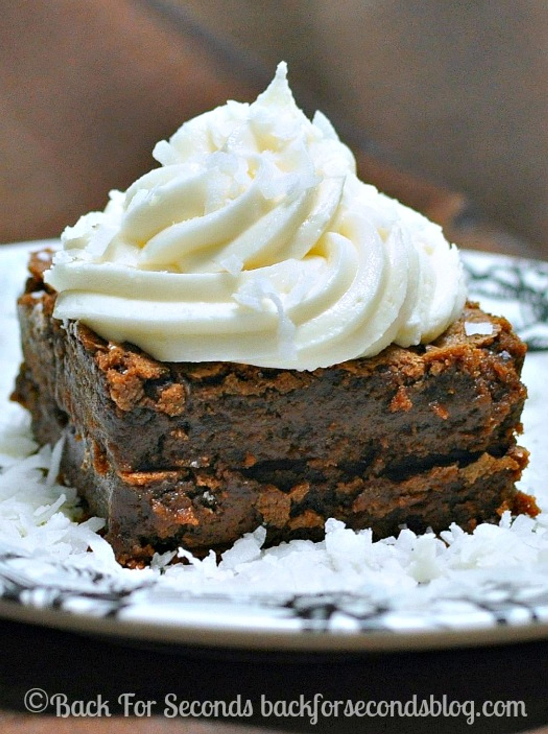 In a large microwave safe bowl melt the butter and stir in the cocoa until well incorporated. Add in the sugar, vanilla, salt and eggs, stirring well with a wooden spoon...
