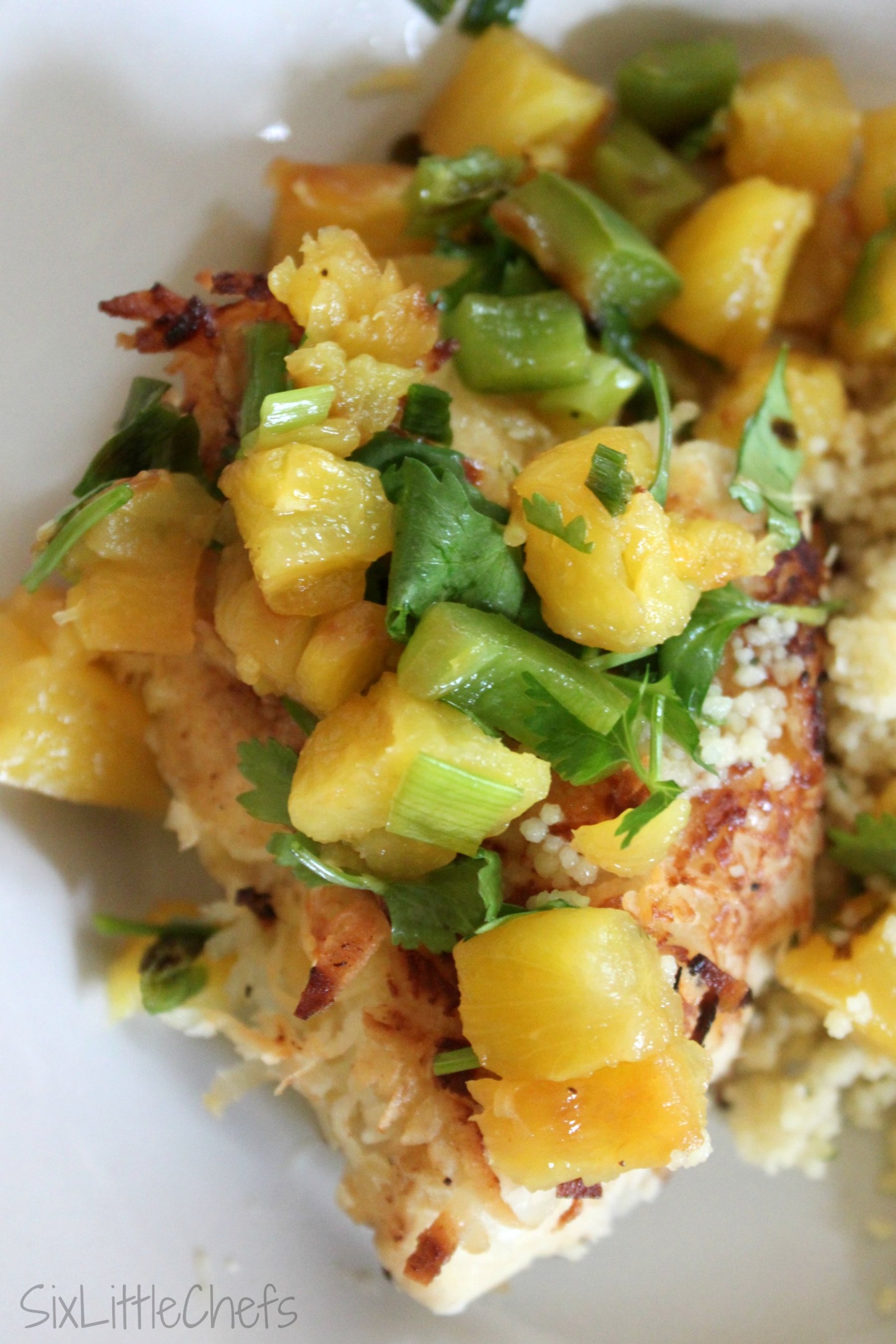 Coconut Crusted Chicken with Grilled Pineapple Salsa