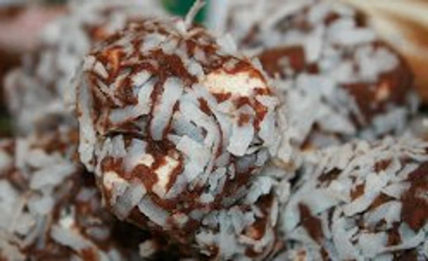 Melt chocolate chips, beat eggs, add icing sugar to beaten eggs and beat again. Stir in melted chips and marshmallows. Drop by teaspoon into coconut, roll around to cover all sides. Then put on waxed paper in cool place to set. Enjoy.