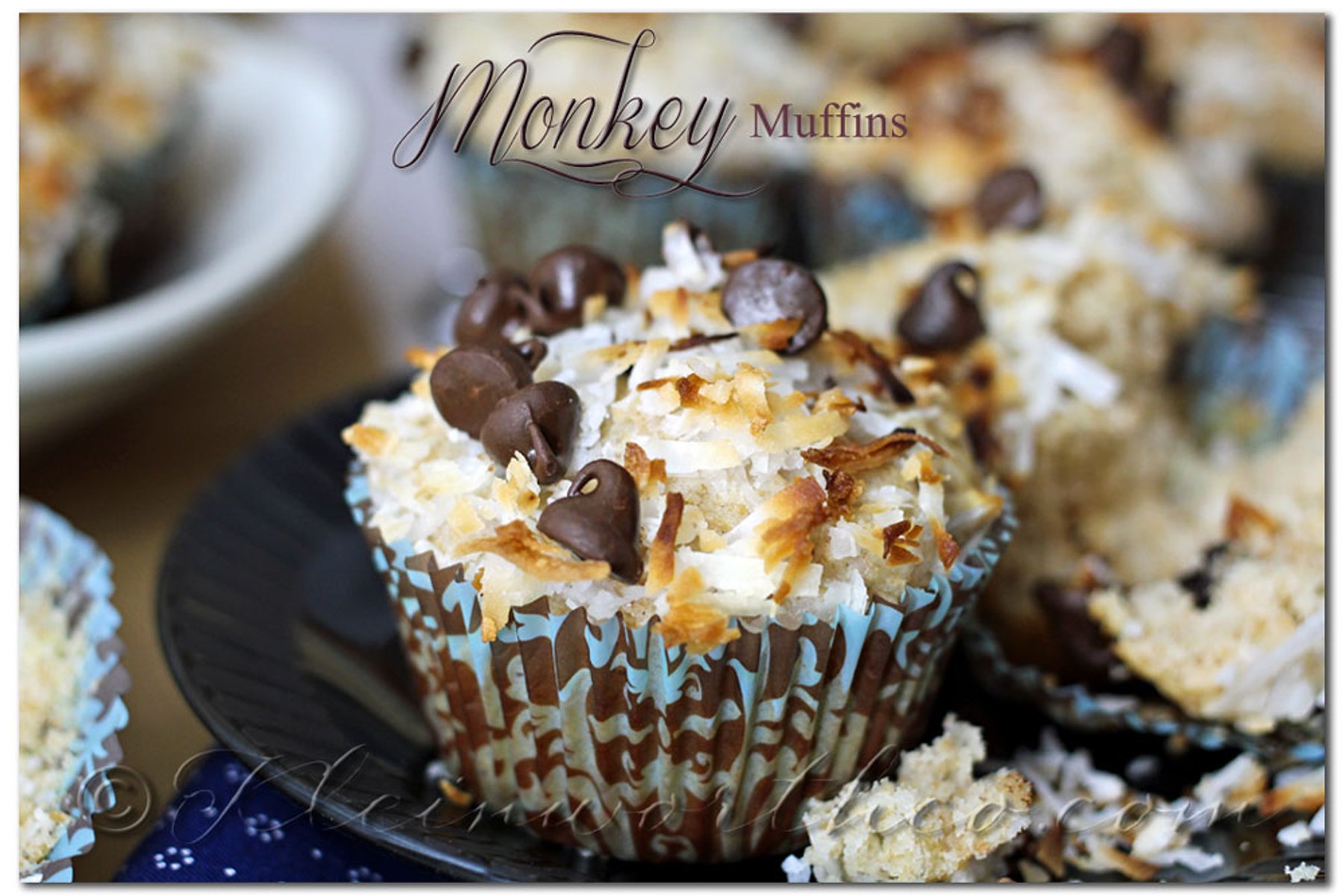 Banana muffins mixed with coconut & chocolate chips. Great treat for the morning.