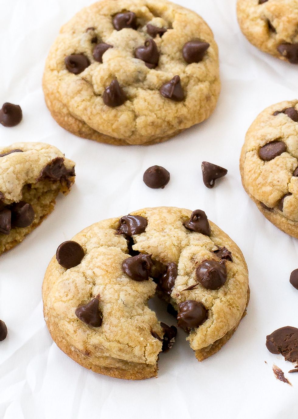 Coconut Oil Chocolate Chip Cookies made with coconut oil instead of butter. They are incredibly soft on the inside and firm on the edges. Thick and fluffy and loaded with tons of chocolate chips!