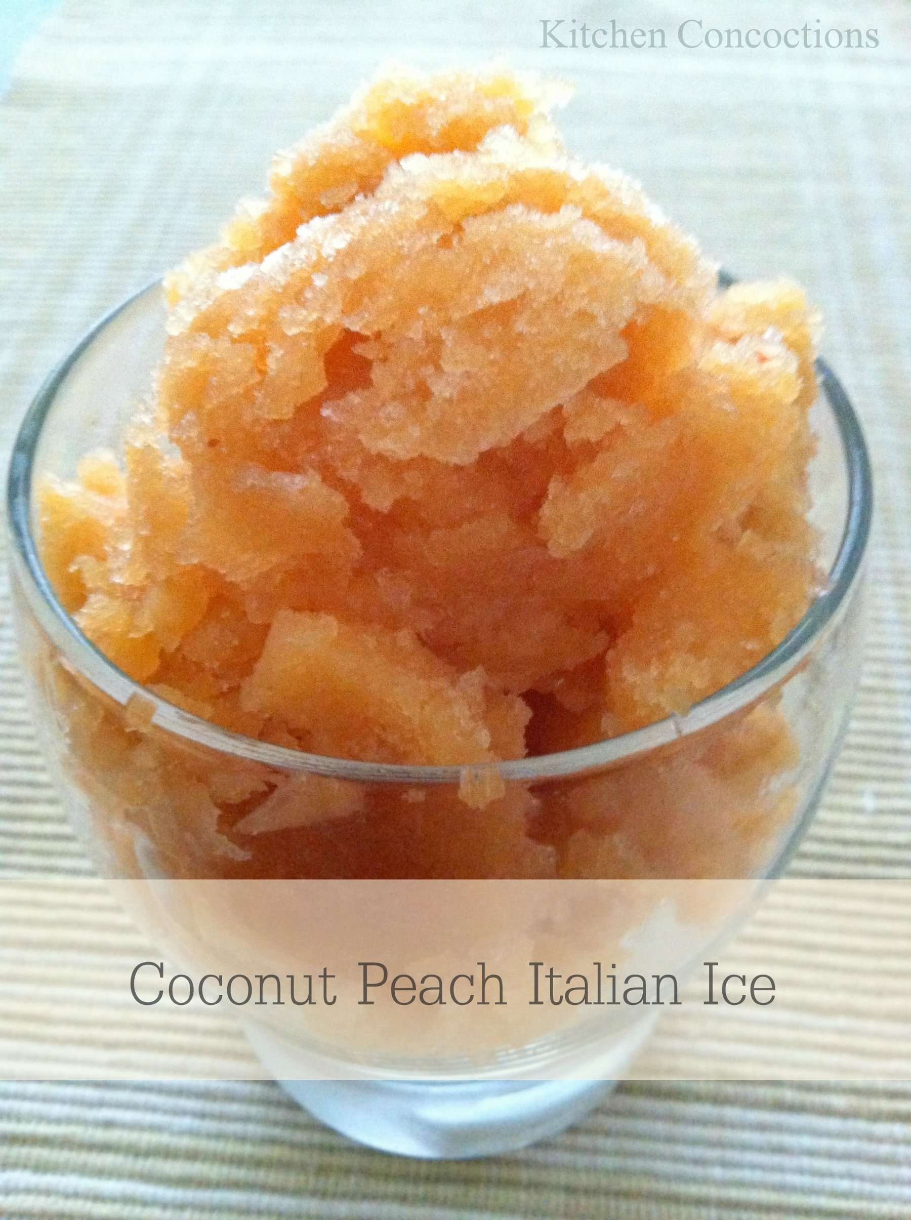 Italian ice is light and refreshing, but add peaches and coconut and you have yourself a little bit of heaven!