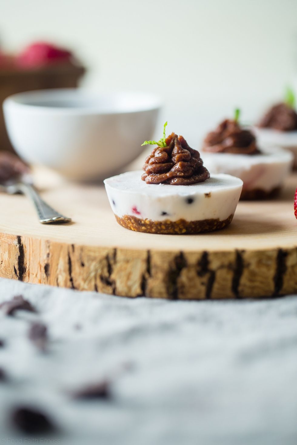 COCONUT RAW CHEESECAKES WITH CHOCOLATE PEANUT FROSTING