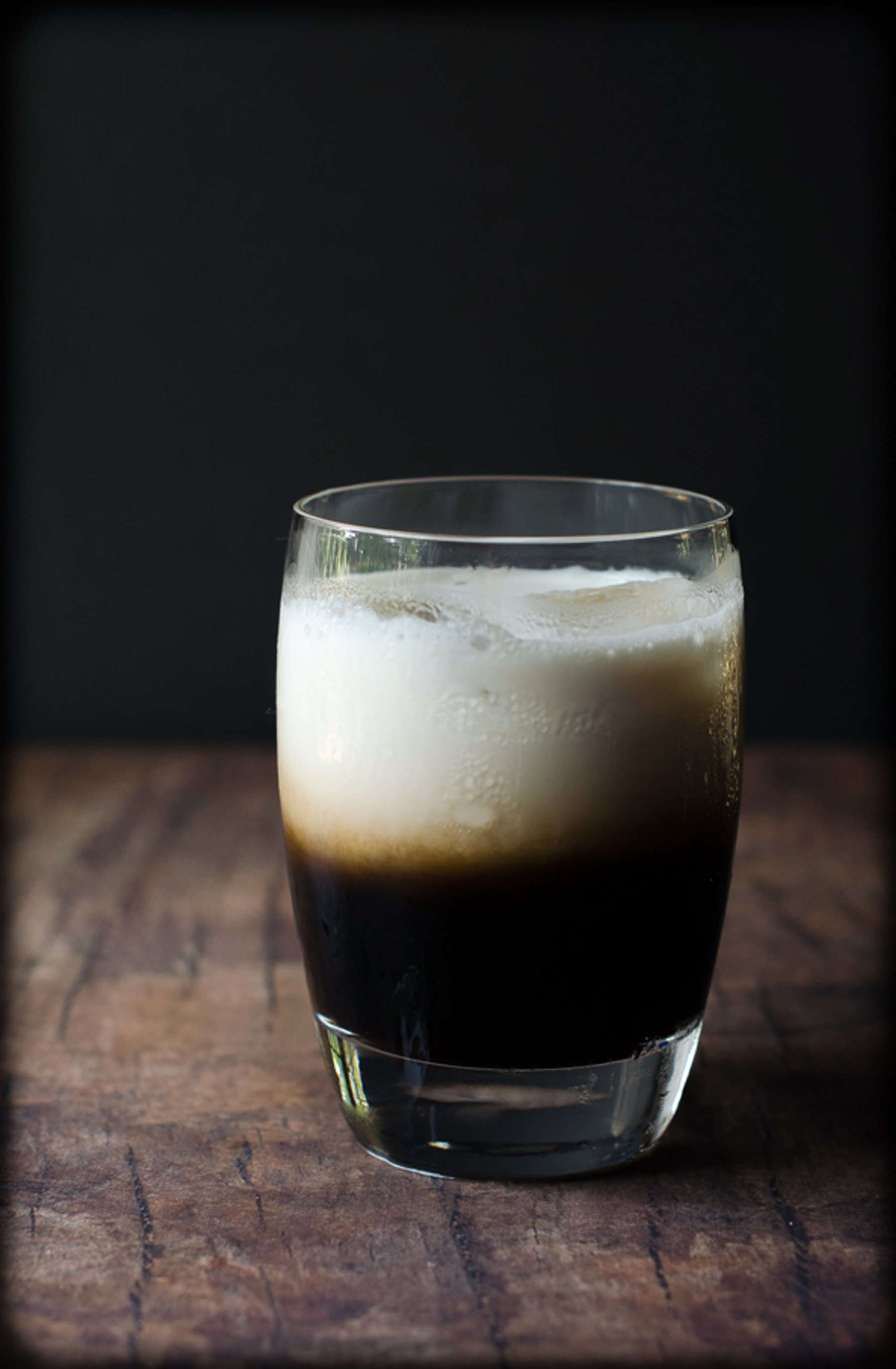 Combine rum and Kahlua in an ice filled glass. Top with either coconut milk, heavy cream, or vanilla almond milk.