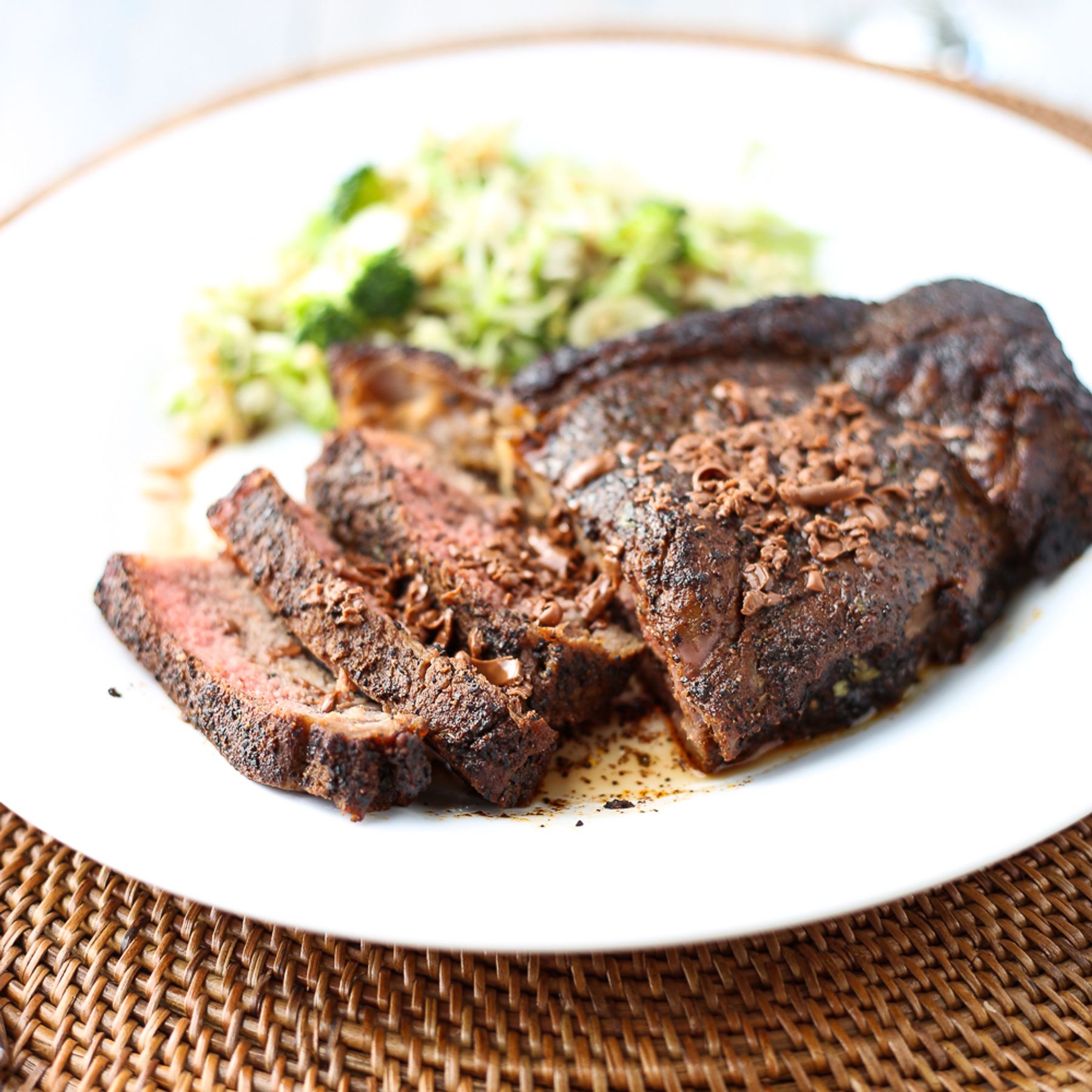 Starbucks Mocha ground coffee + Hershey’s cocoa crusted steak will be your new favorite steak recipe. An easy prep and fool-proof pan to oven cooking method for the ultimate steak recipe!!