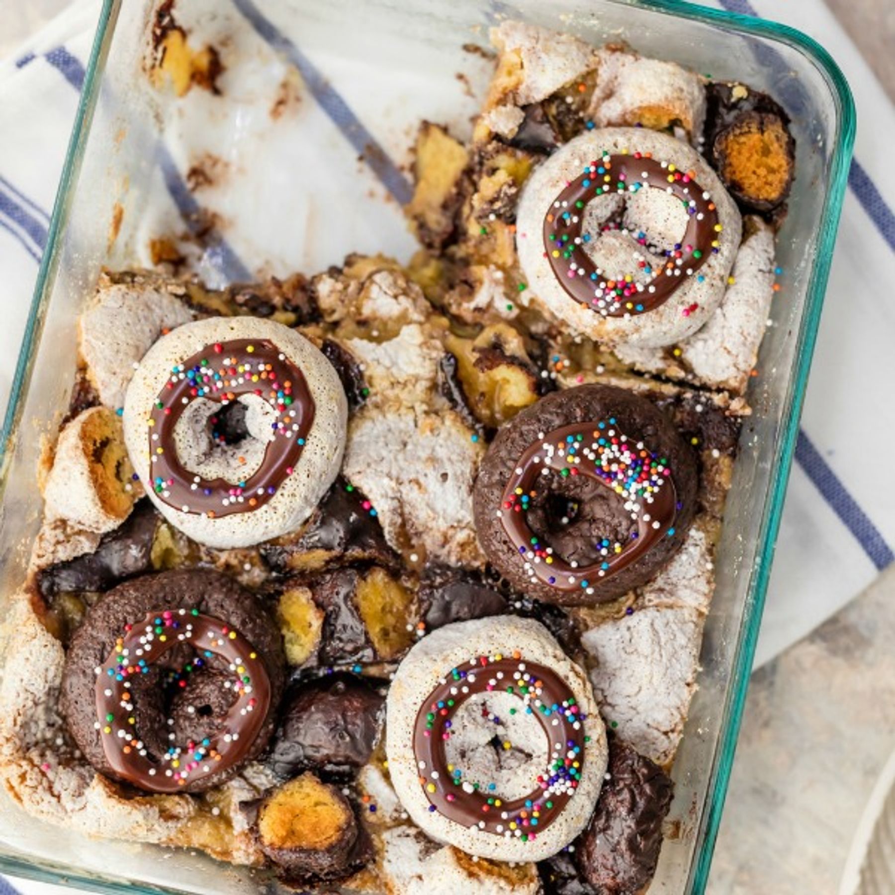 If you\\\'re looking for breakfast decadence, THIS IS IT! Coffee and Donuts Breakfast Bake; satisfying your sweet tooth first thing in the morning!