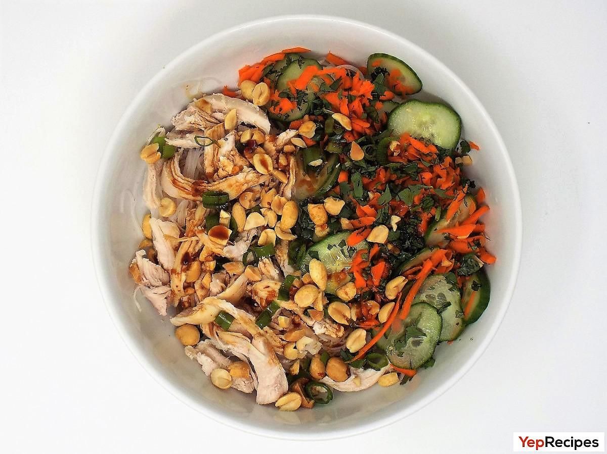 Cold Chicken Noodle Bowl YepRecipesJuly 21, 2022 744 YepRecipes.comCold rice noodles topped with chicken, carrot, cucumber, mint, cilantro, green onion, and peanuts then drizzled with a spicy garlic and lime dipping sauce.1See the full directions on my site