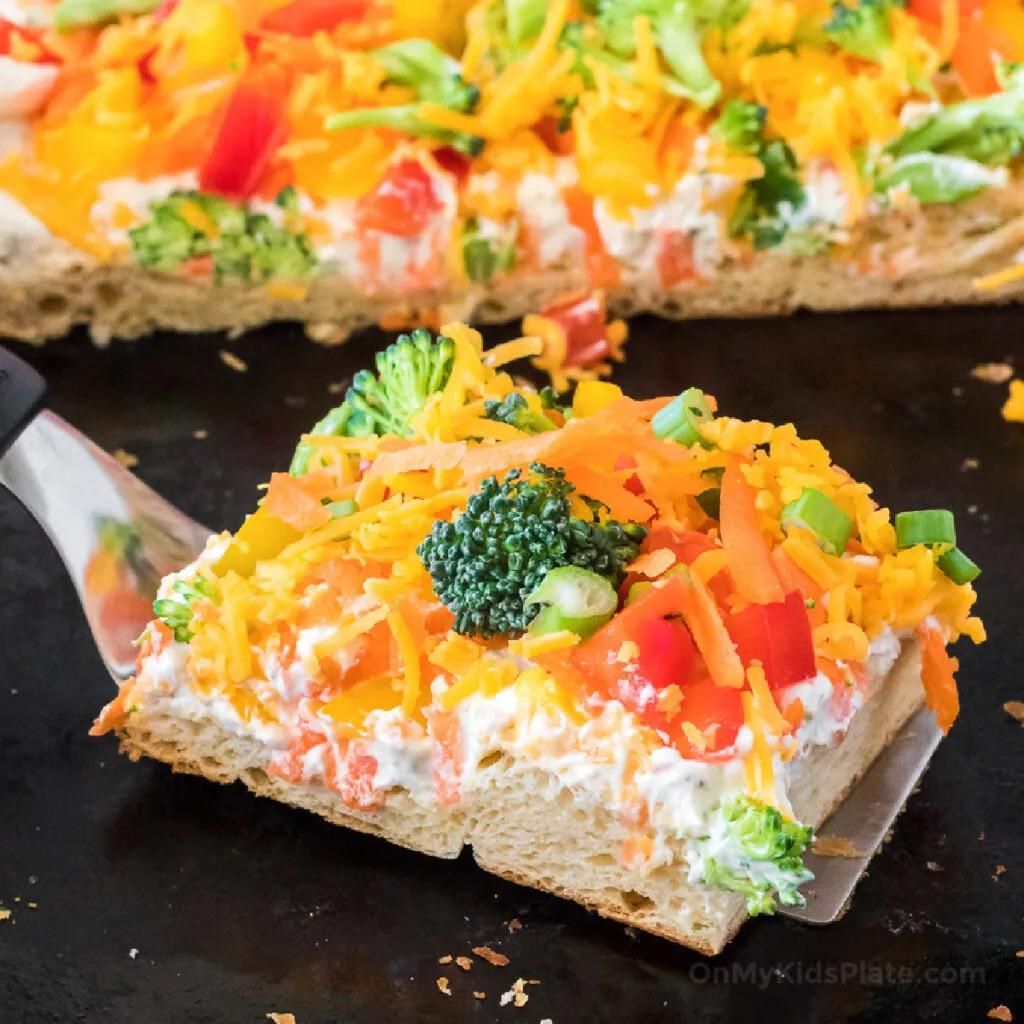 Cold Veggie Pizza OnMyKidsPlateApril 02, 2022 39 Cold veggie pizza is a staple appetizer that is creamy and packed with ranch flavor. This light refreshing appetizer add a colorful pop of deliciousness to the table for any spring or summer party.Find the full recipe on my site!See the full directions on my site
