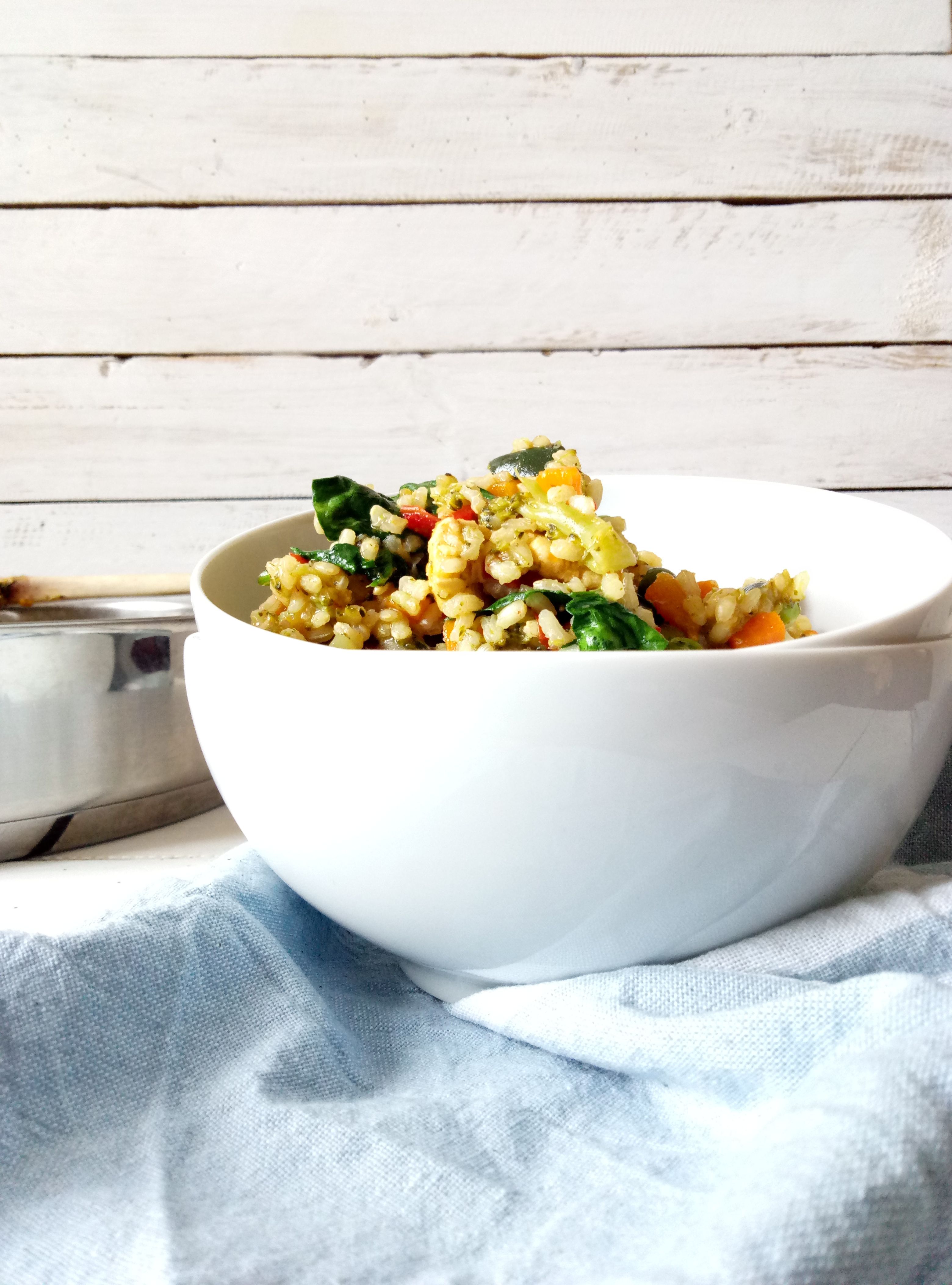 Colorful Brown Rice Pilaf with Chicken and Veggies