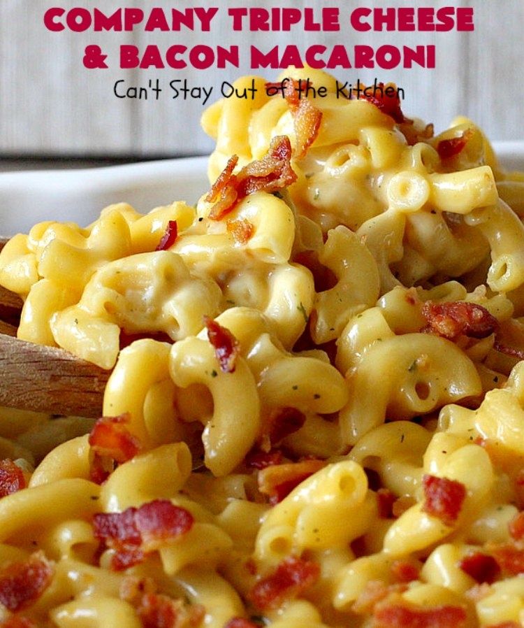 Company Triple Cheese and Bacon Macaroni is mouthwatering. It's filled with 3 cheeses & bacon. Wonderful comfort food any time of the year.