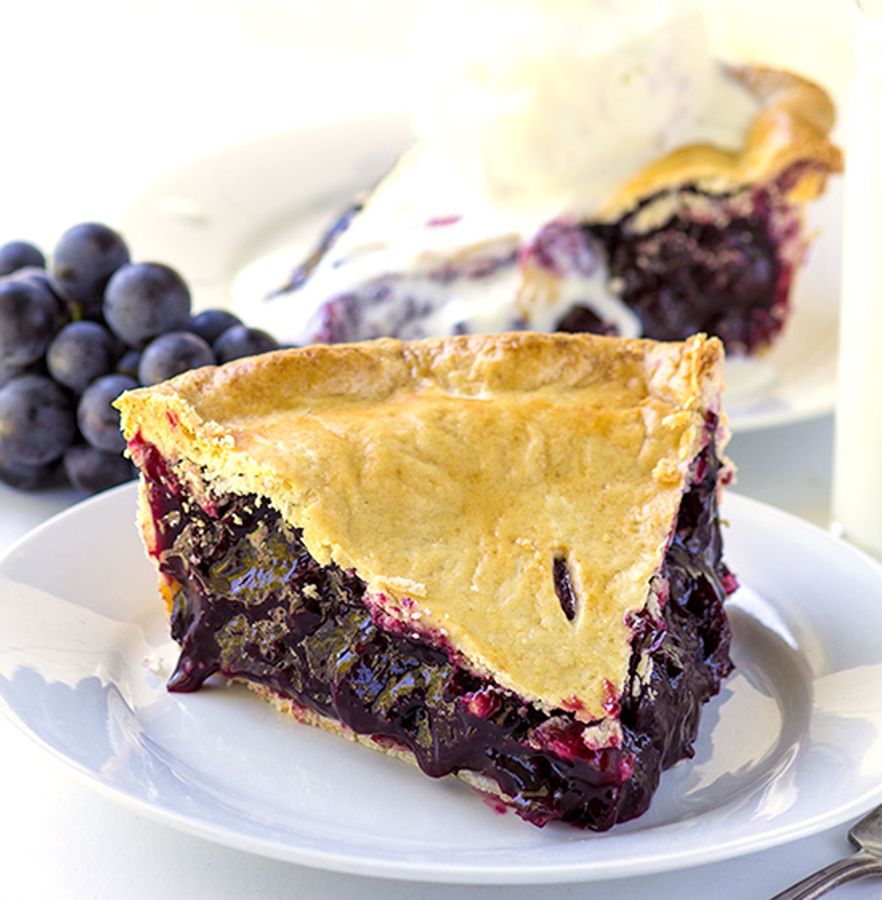 Concord Grape Pie - delicious grape pie filling baked inside a pie crust and topped with a scoop of vanilla ice cream!