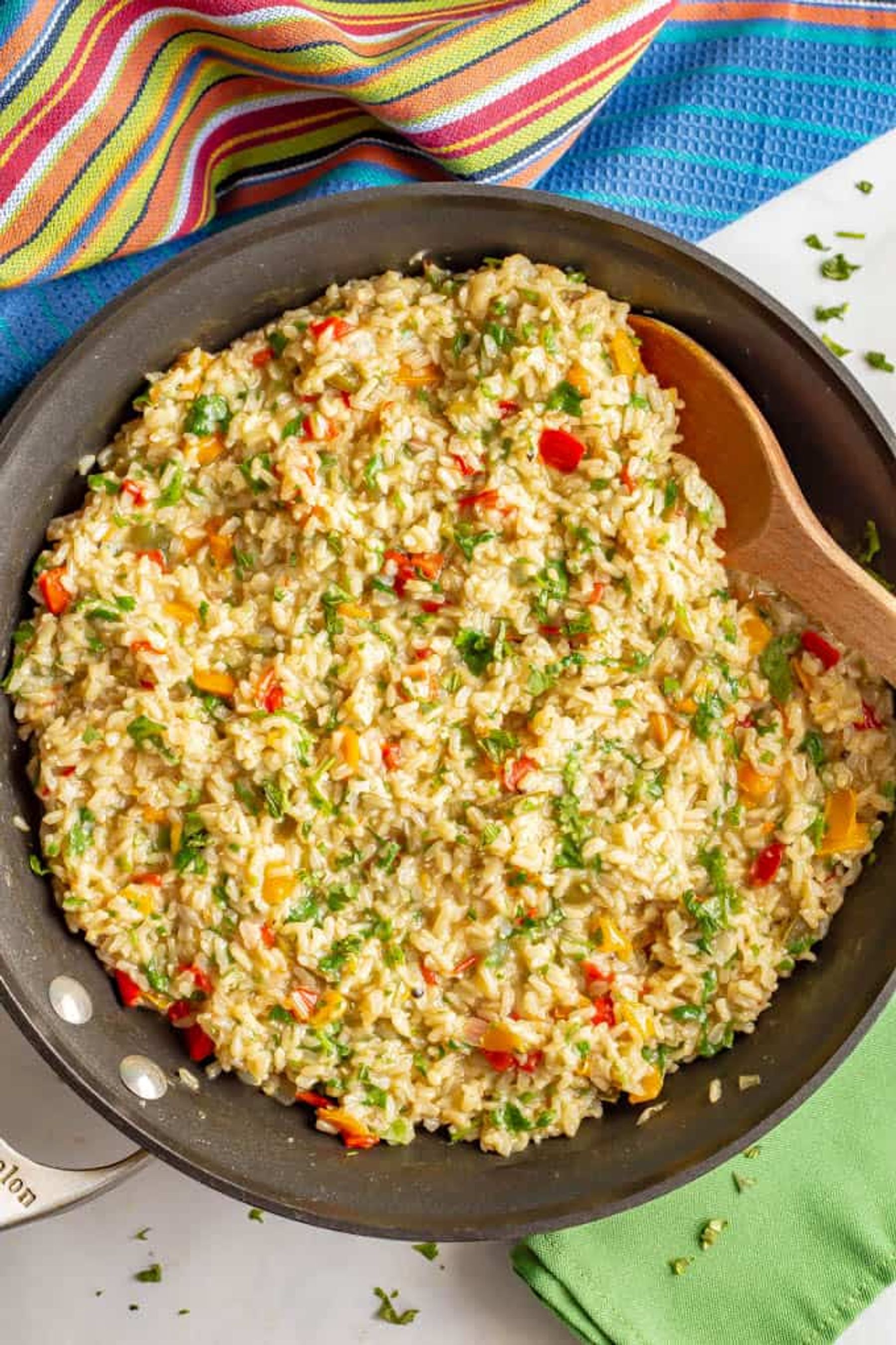 Confetti rice is a fun mix of fluffy rice and colorful bell peppers for an easy side dish or to use with tacos or grain bowls.
