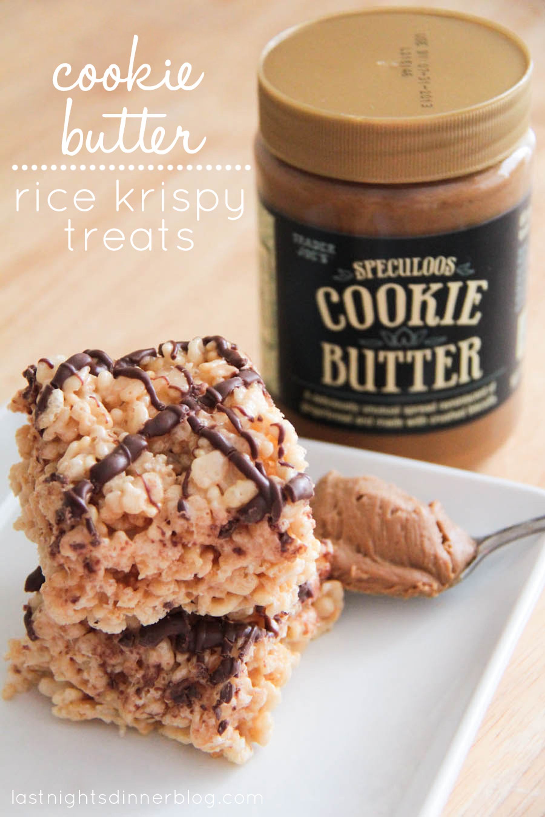 Melt butter in a medium saucepan, and add marshmallows. Stir until marshmallows are melted, then add cookie butter. Stir until melted and consistent throughout, then add rice krispies to taste. Press into a...