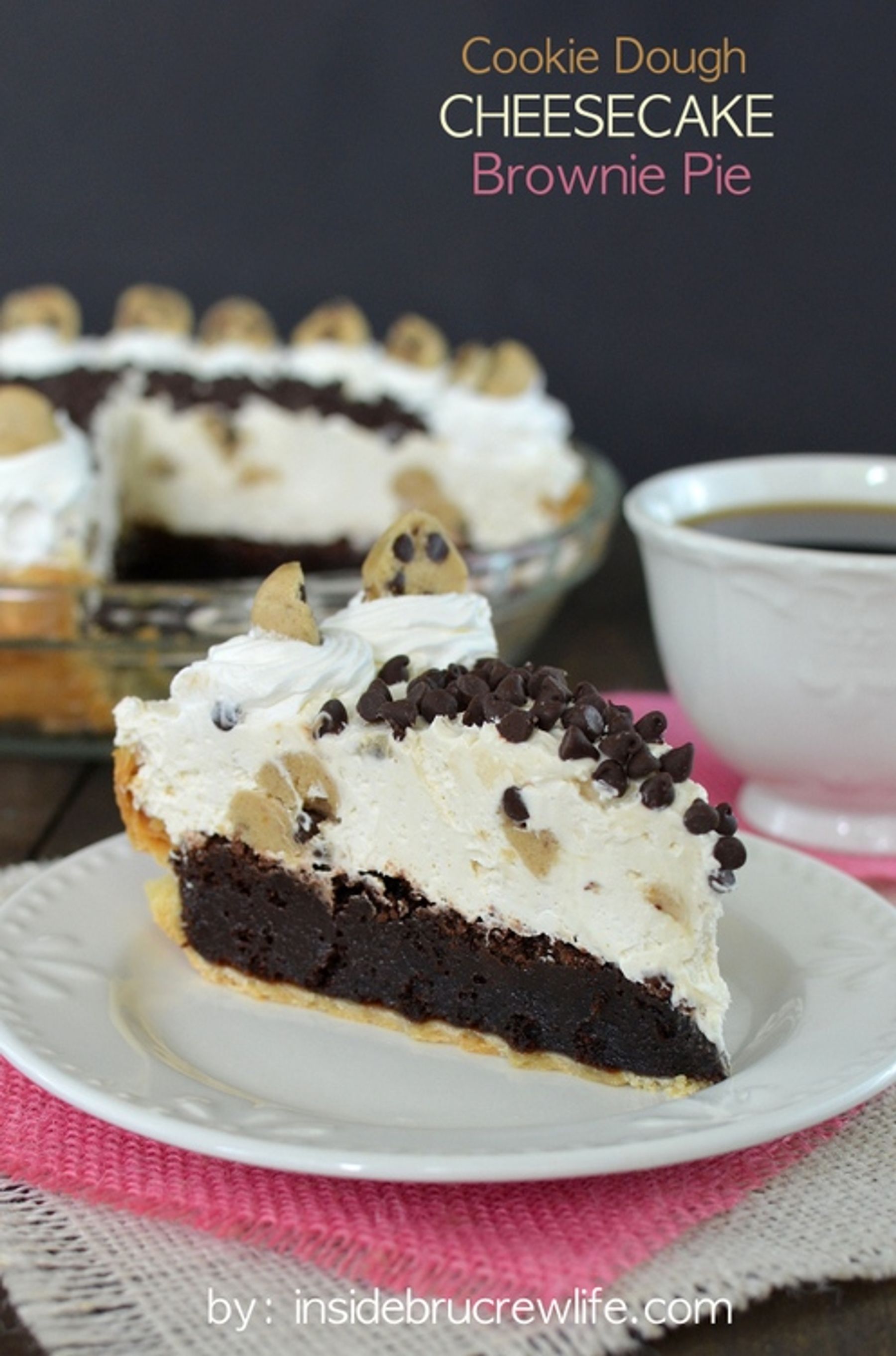Layers of brownie, no bake cheesecake, and cookie dough bites turn this into a decadent pie that you have to try.