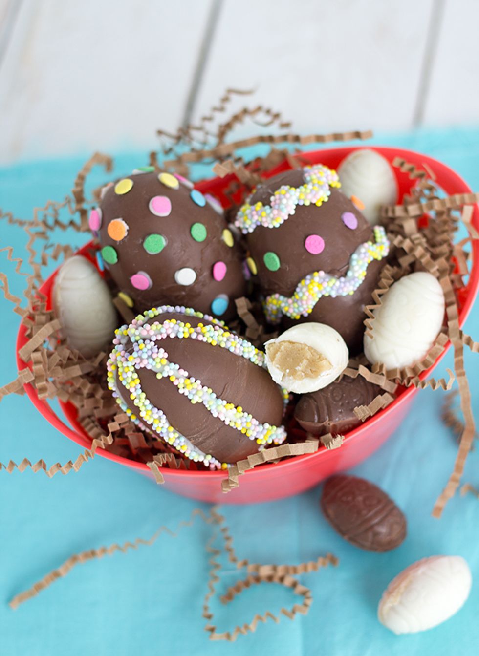 Hollow Easter eggs that fun to decorate and has little baby cookie dough truffles stuffed inside.