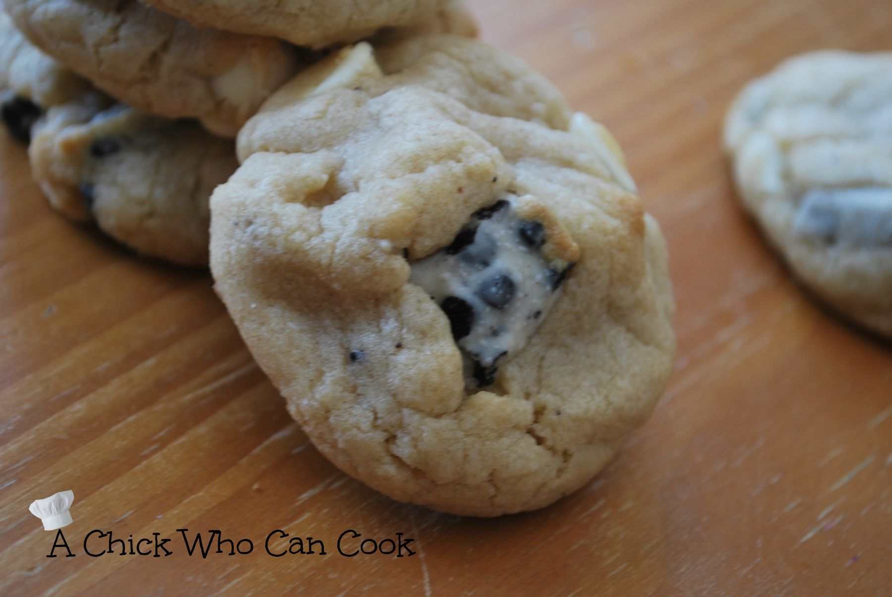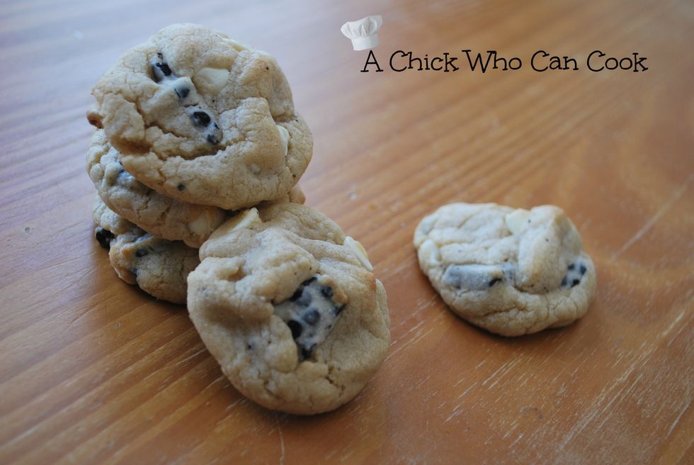 These are by far one of my new favorite cookies! I love cookies and cream down to the ice cream to the candy bars inside this cookie. My husband has been begging me to make these cookies since he found them on Pinterest *yes HE found them* I actually scrolled right past these and he yelled go back up! So glad he made me