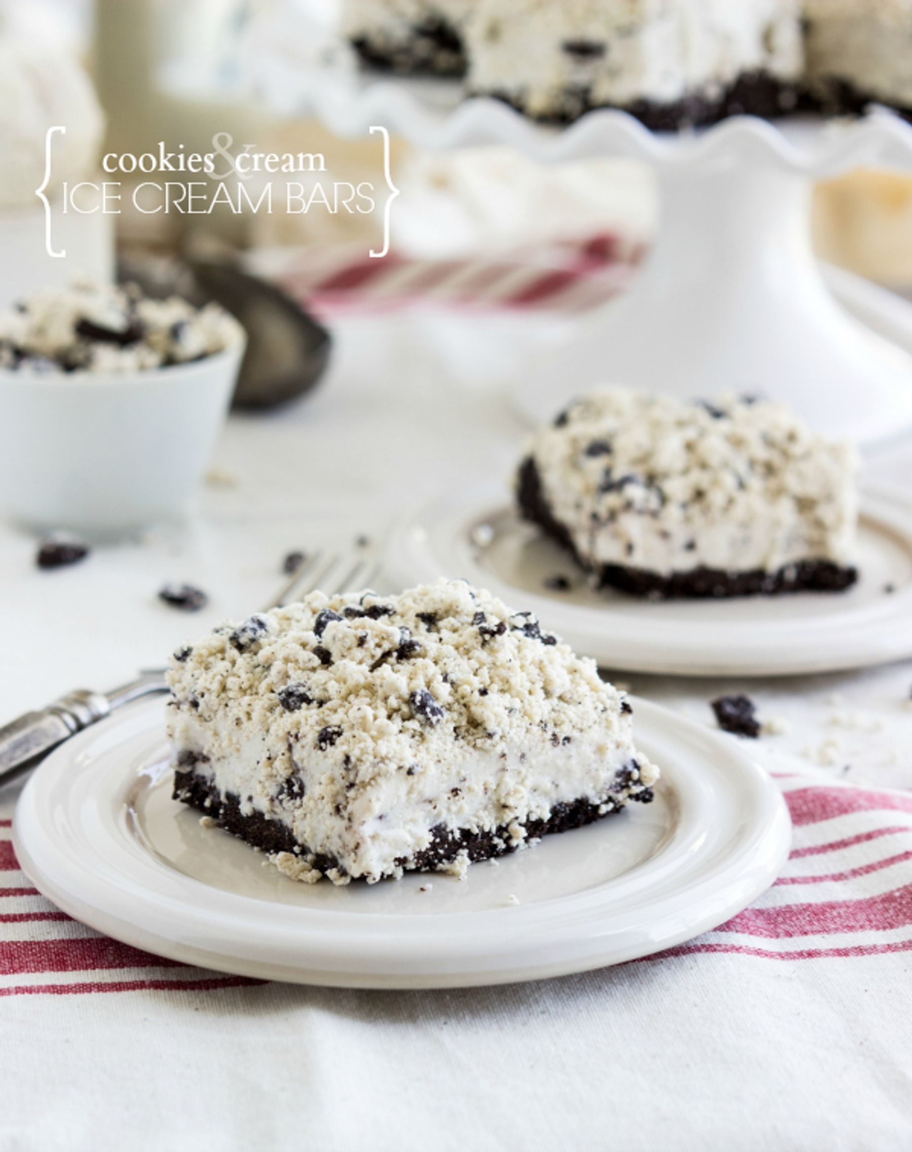 Cookies and cream ice cream bars – a dessert inspired by the famous Oreo Good Humor Bars. These dessert bars are easy to make, ready in less than an hour (including freezing time!), perfect for a hot summer day, and sure to please a crowd!
