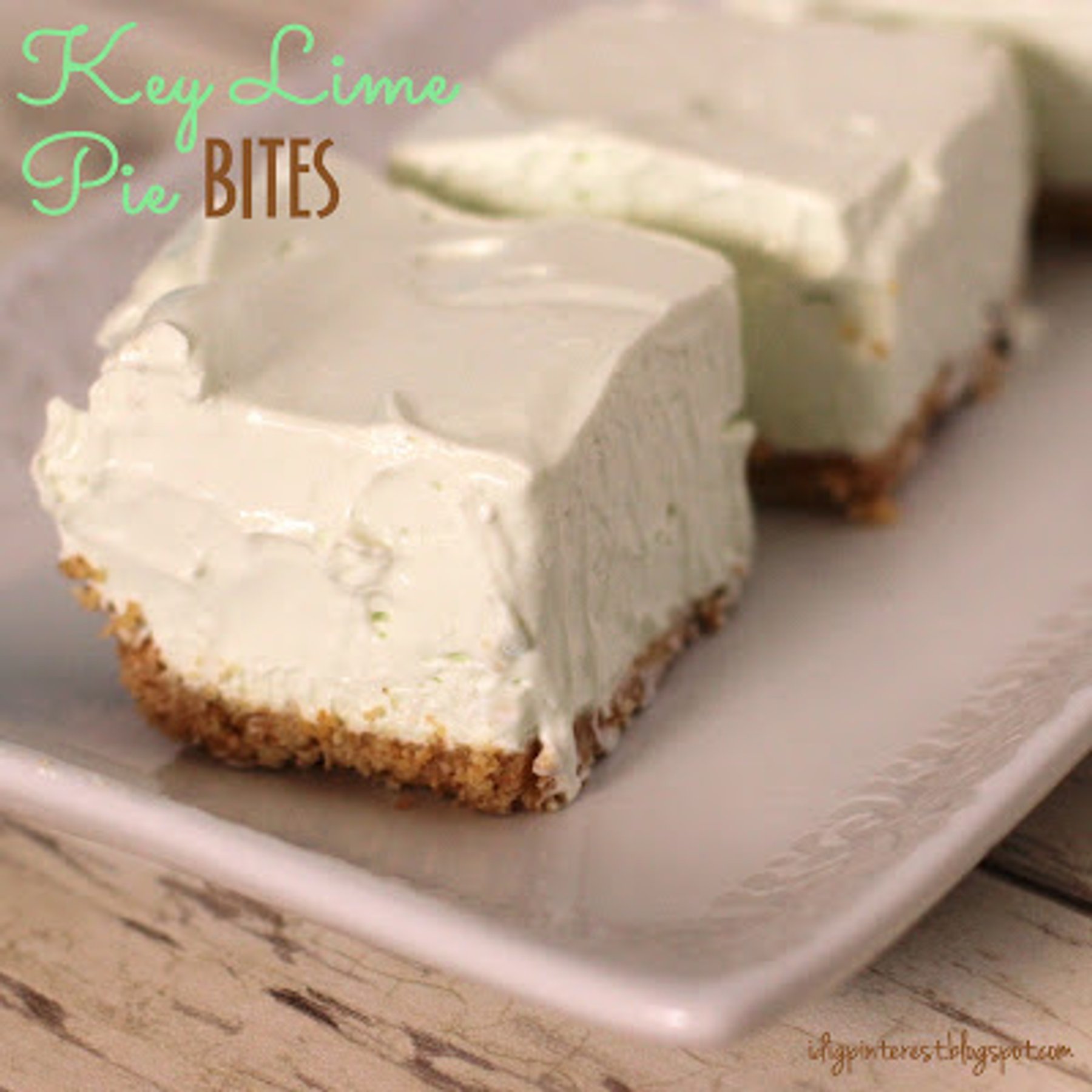 Citrus is the perfect summertime taste...it's so light and refreshing. Combine it with cool whip, sweetened condensed milk and a thin graham cracker crust, and it's heaven in a bite. These Key Lime Pie treasures are just that. Straight out of the fridge or freezer, they are meant to please the parched palate-to satisfy the cool craving on a crazy hot day. Instead of making them in the typical pie pan, I put them in an 8x8 glass square baking dish, then cut into mini bites for adde