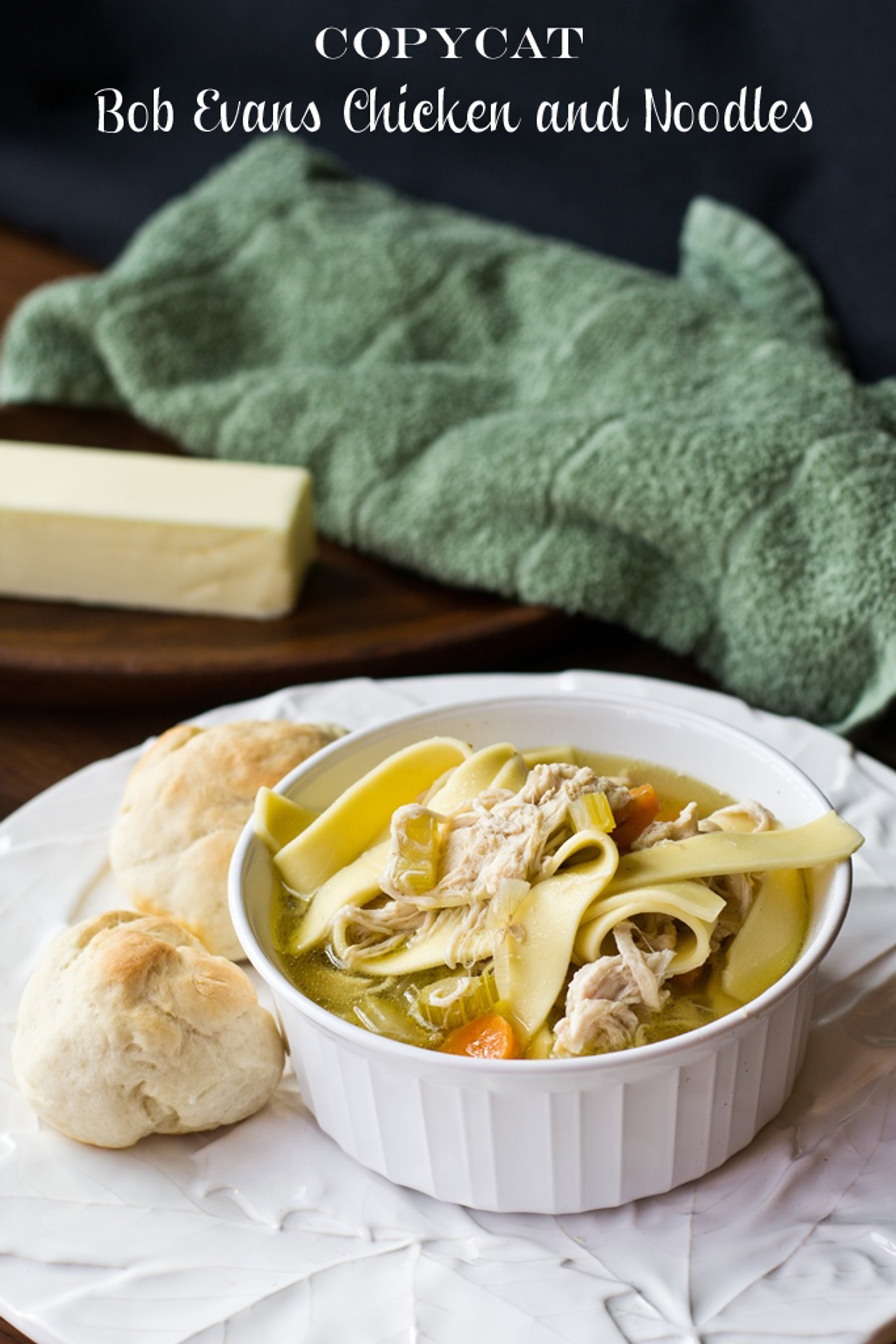 Comforting Chicken & Noodles very similar to Bob Evans Chicken & Noodles Recipe. A great chicken noodle soup with the benefit of using the slow cooker!