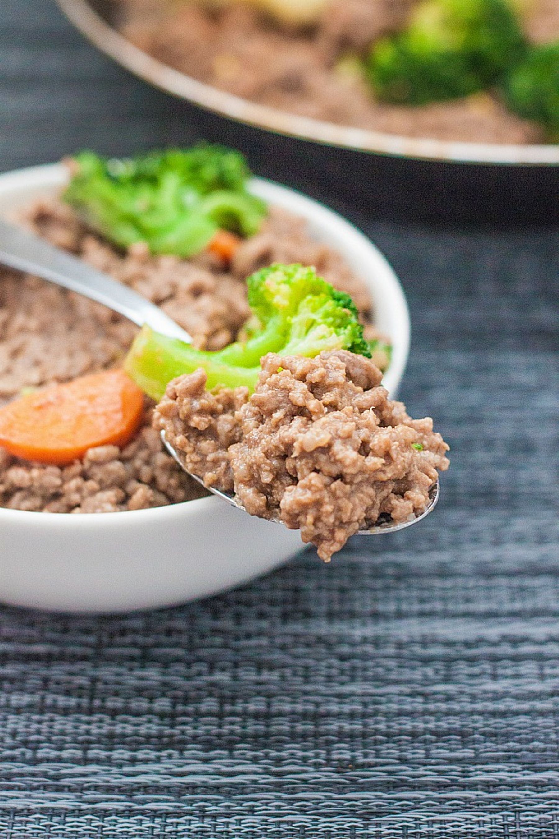 Heat a deep frying pan or wok on medium heat generously covered with coconut oil. Once hot, add the ground beef and allow to brown slightly. Once browned, add the broccoli, carrots and the sauce and mix very well until fully incorporated. Stir occasionally until meat is fully browned and sauce mixture has reduced completely (approximately 5-6 minutes). Remove from the heat and serve immediately over rice or noodles.