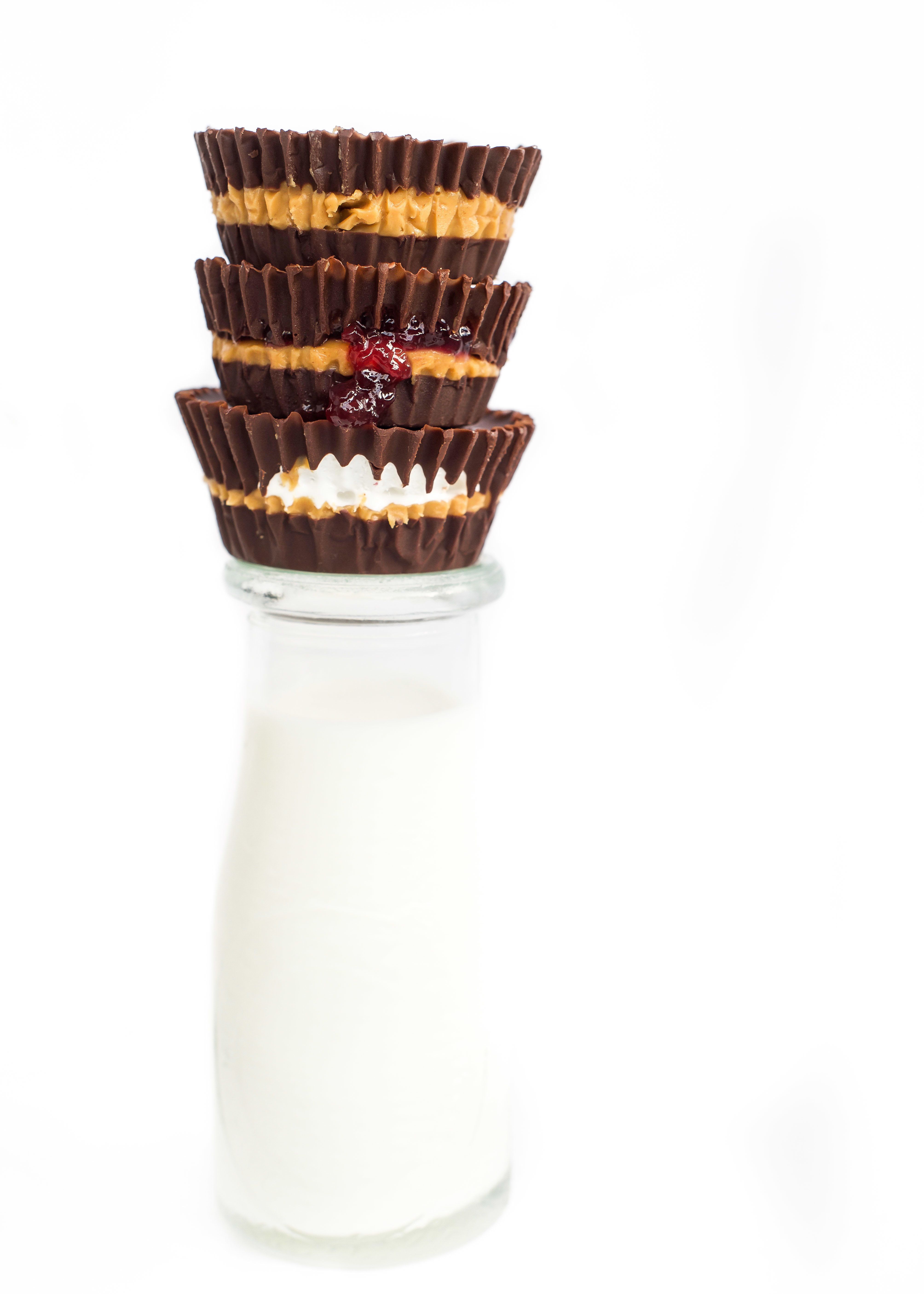 These incredibly simple & delicious Copycat Reese's Peanut Butter Cups are made 3 different ways including: "Regular", S'Mores & Peanut Butter & Jelly!
