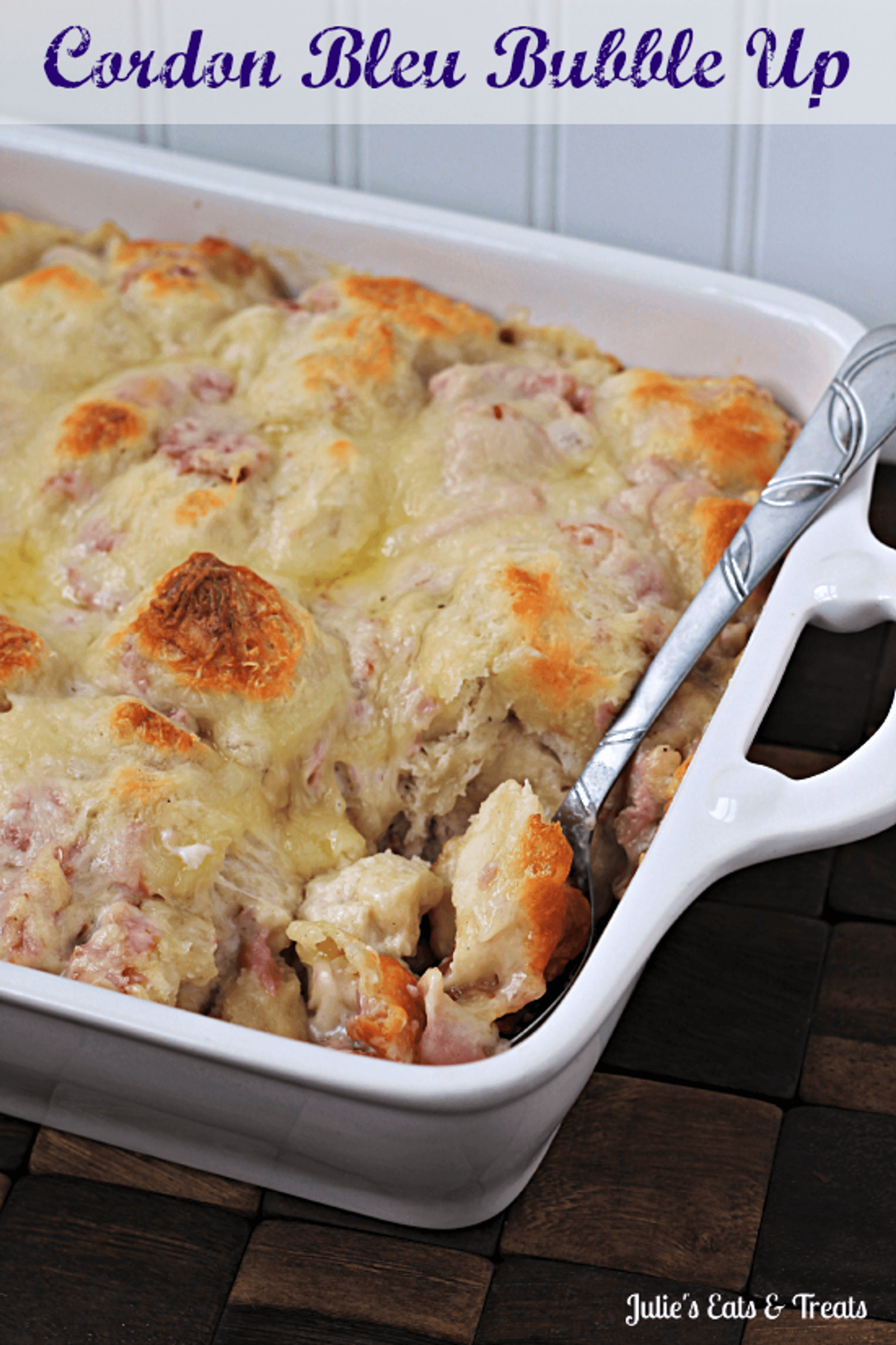 Comforting casserole full of biscuits, Alfredo sauce, chicken, ham and Swiss cheese!