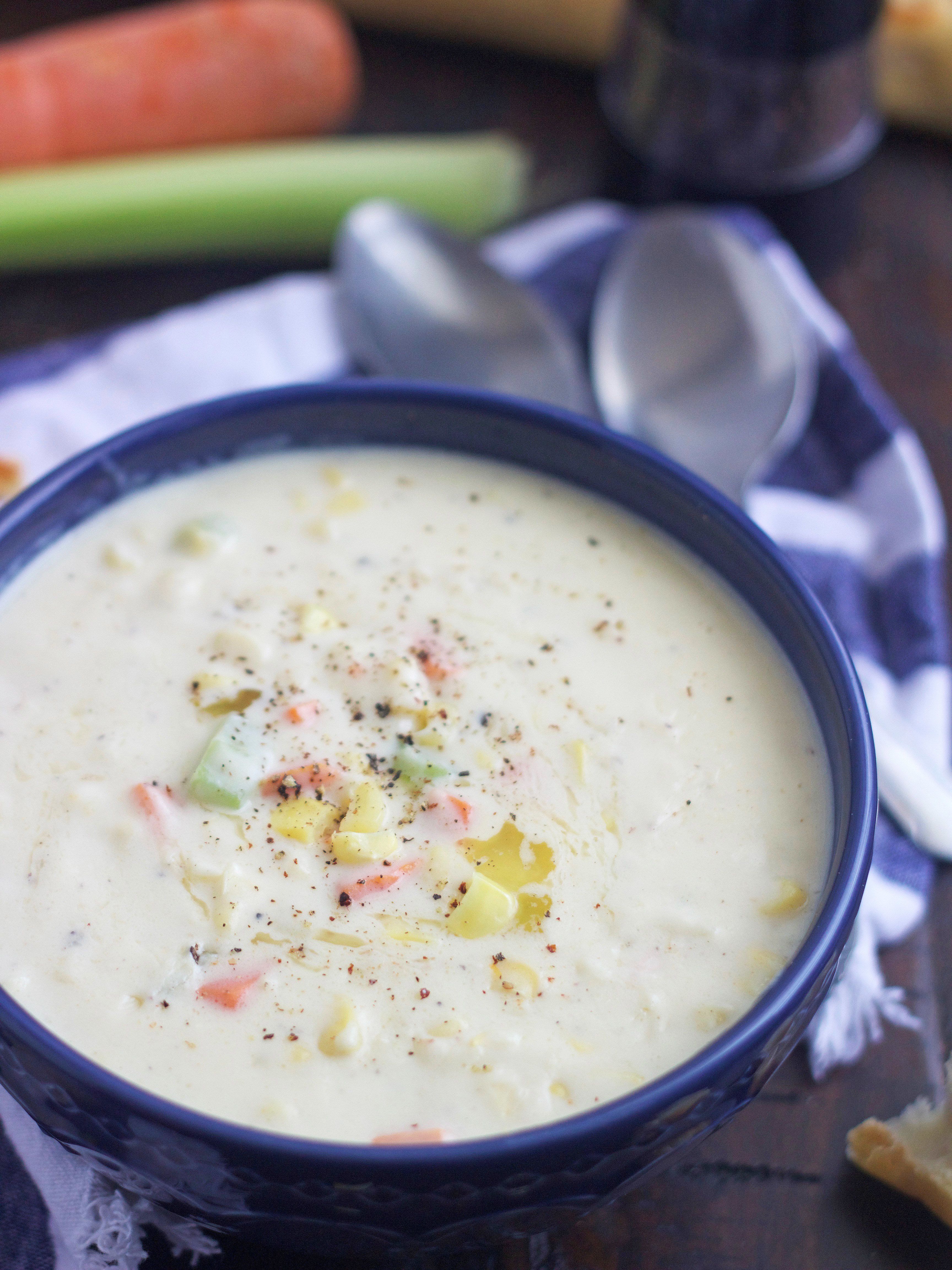This corn chowder will become an instant favorite. It's smooth, velvety and tastes amazing!