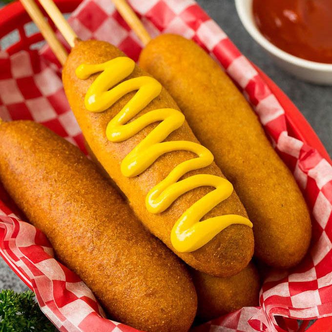 These homemade corn dogs are coated in a sweet and savory cornbread batter, then deep fried to golden brown perfection. A fun meal option that tastes way better than what you'd get at the local fair!