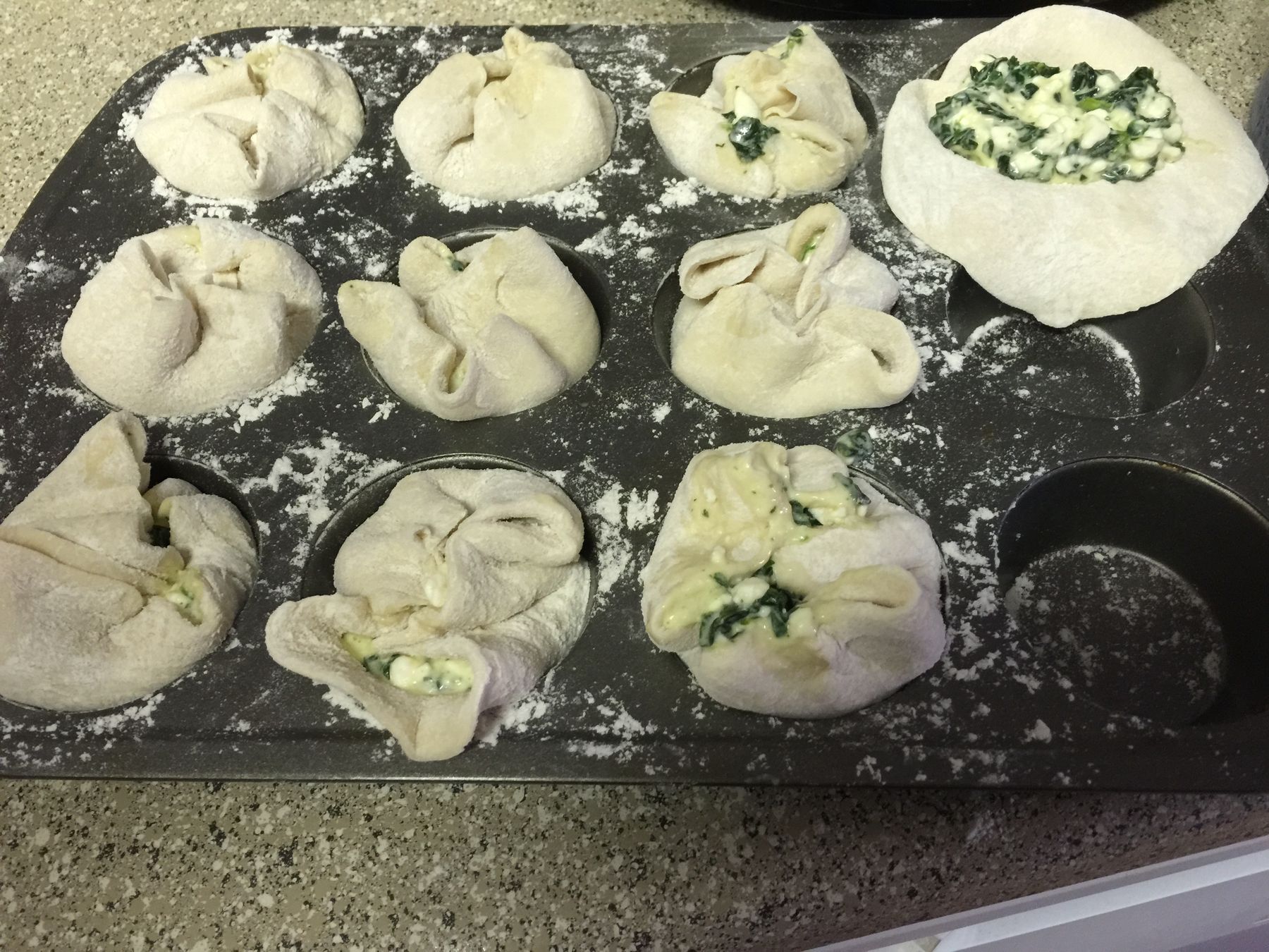 My mom has her version on how she makes Spanakopita using cottage cheese instead of Feta, well, I did a test on this making this pie into muffins, both the 6 count muffin pan or 12 count muffin pan. The recipe is great, because you can use any brand of biscuits or use pastry dough which can be found in the cooler section of your local grocery store.