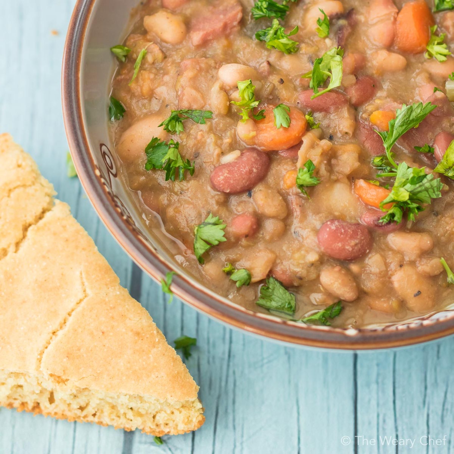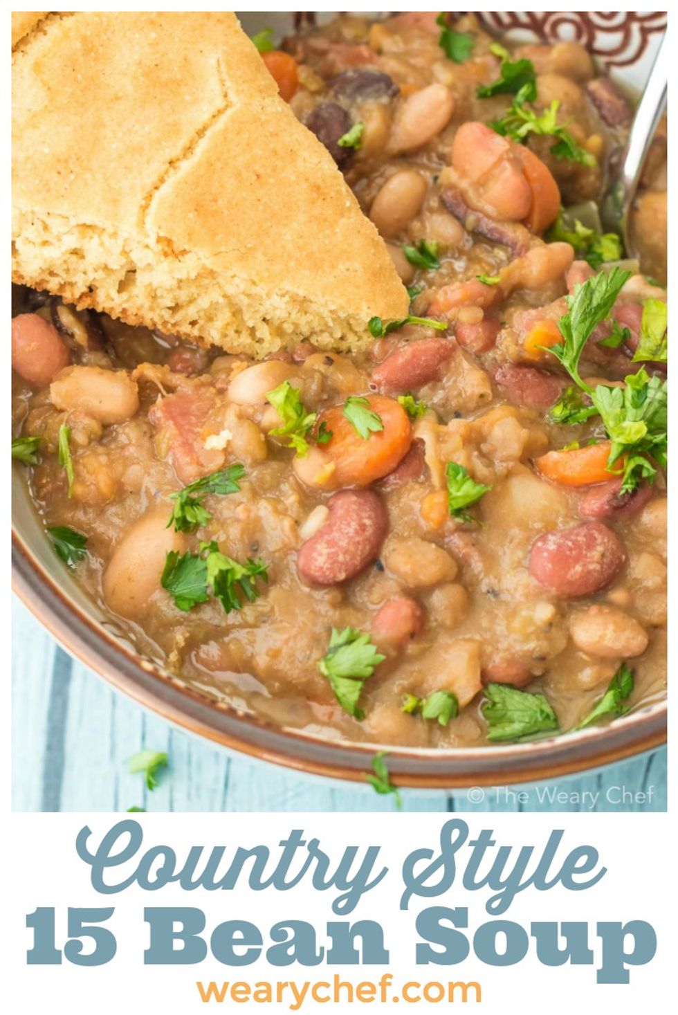 This country style 15 bean soup with ham is a down home favorite dinner that you will love! It is filling, healthy, and delicious!