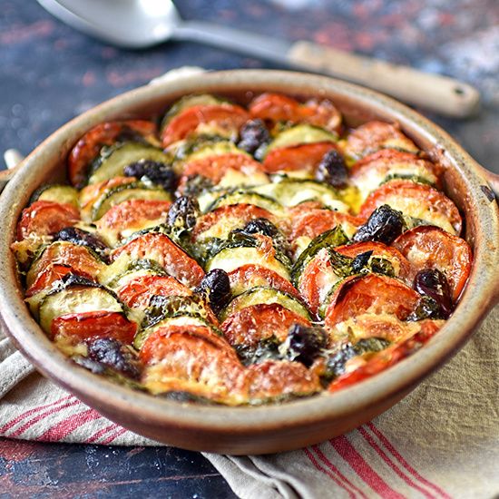 Traditionally cooked in a shallow, earthenware dish called a tian, this dish is made without the addition of liquid in order to help bring out the intrinsic flavours of the ingredients. The base flavours – in this case tomatoes, courgettes and olives – are intensified through this cooking process.