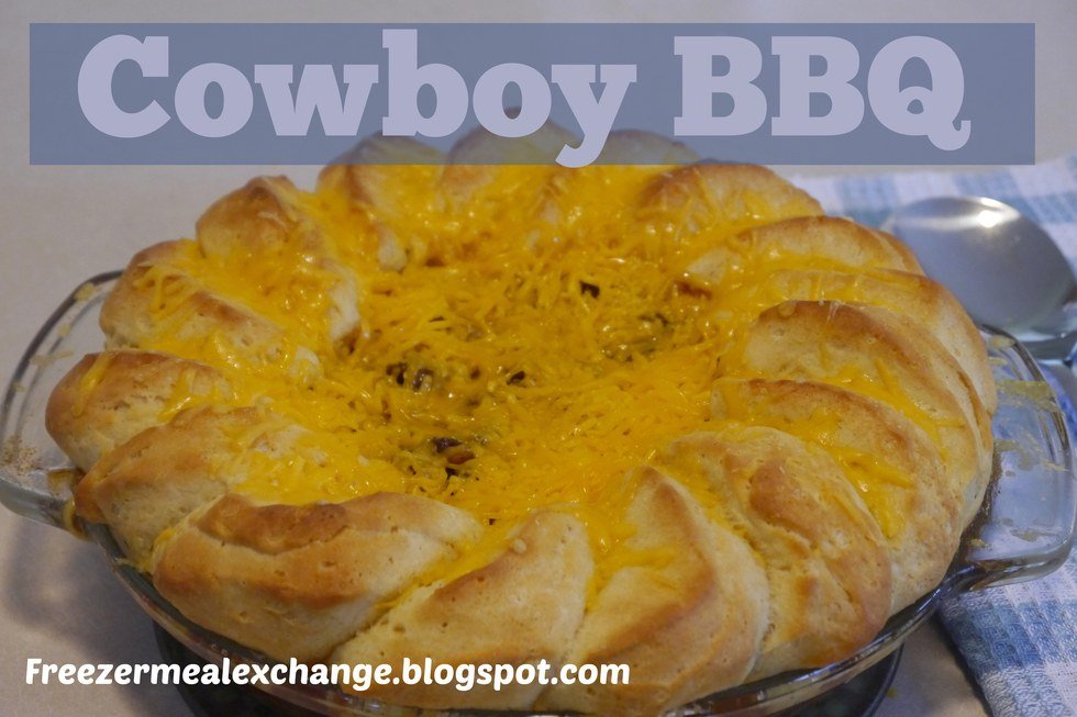 This quick freezer meal is one most often requested by my 9 year old son. (This is a kid who loves baked beans and quite often will volunteer to make beanie weenies for dinner. Hey, he's volunteering to cook... I'm not going to turn him down.) Cook mix and freeze meat mixture in advance. Then thaw bake and top with refrigerator biscuits to make a meal hearty enough for any cowboy.