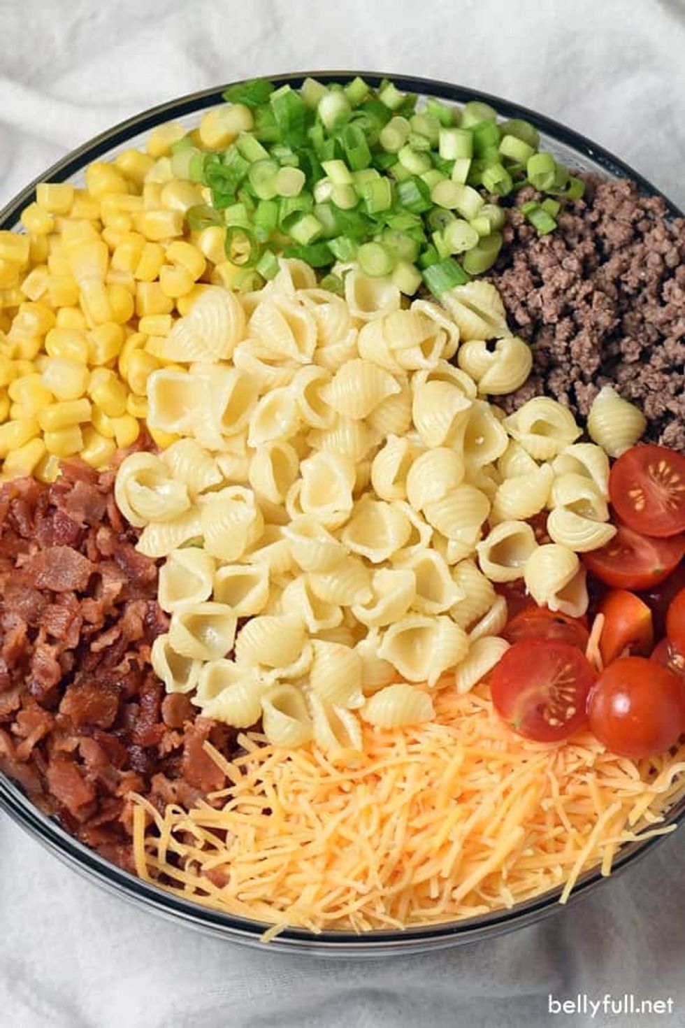 Side Dishes Cowboy Pasta Salad Chef ErnieSeptember 29, 2018 12414 bellyfull.net 4-6Check out this delicious recipe!See the full directions on my site Bacon, ground beef, cheese, and hot sauce make this Cowboy Pasta Salad a definite crowd pleaser! Perfect for summer get togethers.PastaSafewaypasta salad30 Minutes or LessMOST POPULAR RECIPESbellyfull.net