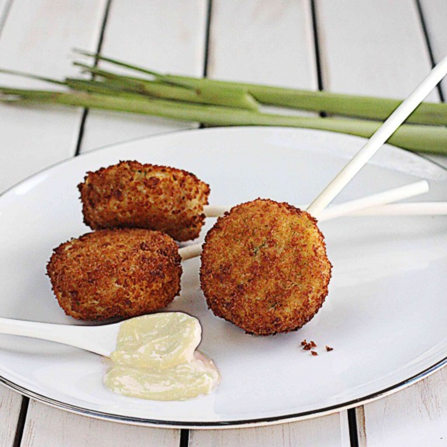 Crab Cake Lollipops with Easy Lemongrass Aioli