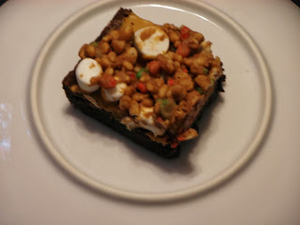 Microwave ½ cup + 2 tbsp peanut butter in a small bowl, then evenly spread over the brownies in the...