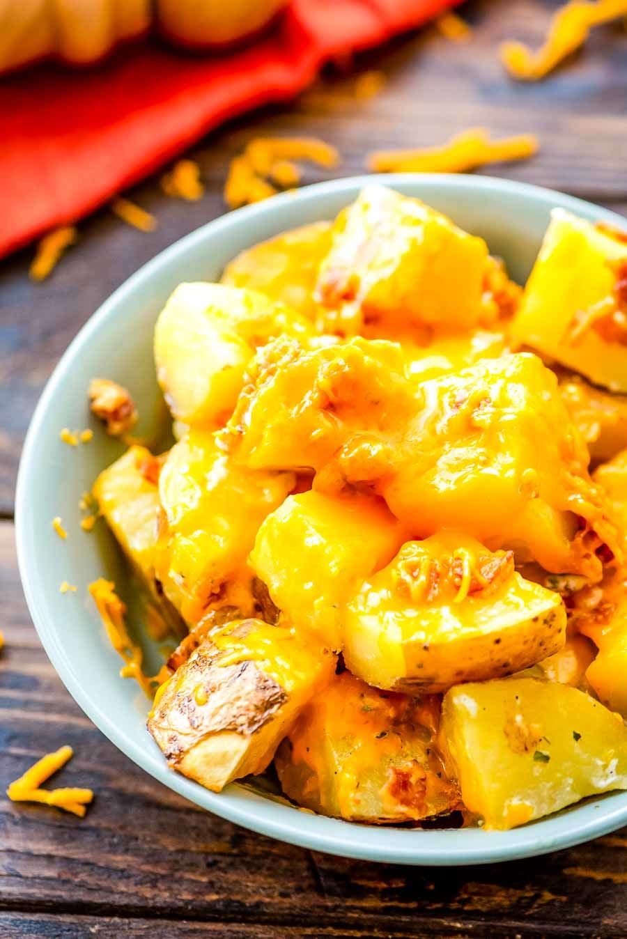 Crack Potatoes are a quick and easy side dish recipe perfect for the weeknight. They only require five ingredients – potatoes, butter, bacon bits, ranch dressing and cheese! They come together quickly and are always a hit with the family. These Cheesy Bacon Ranch Potatoes are amazing!