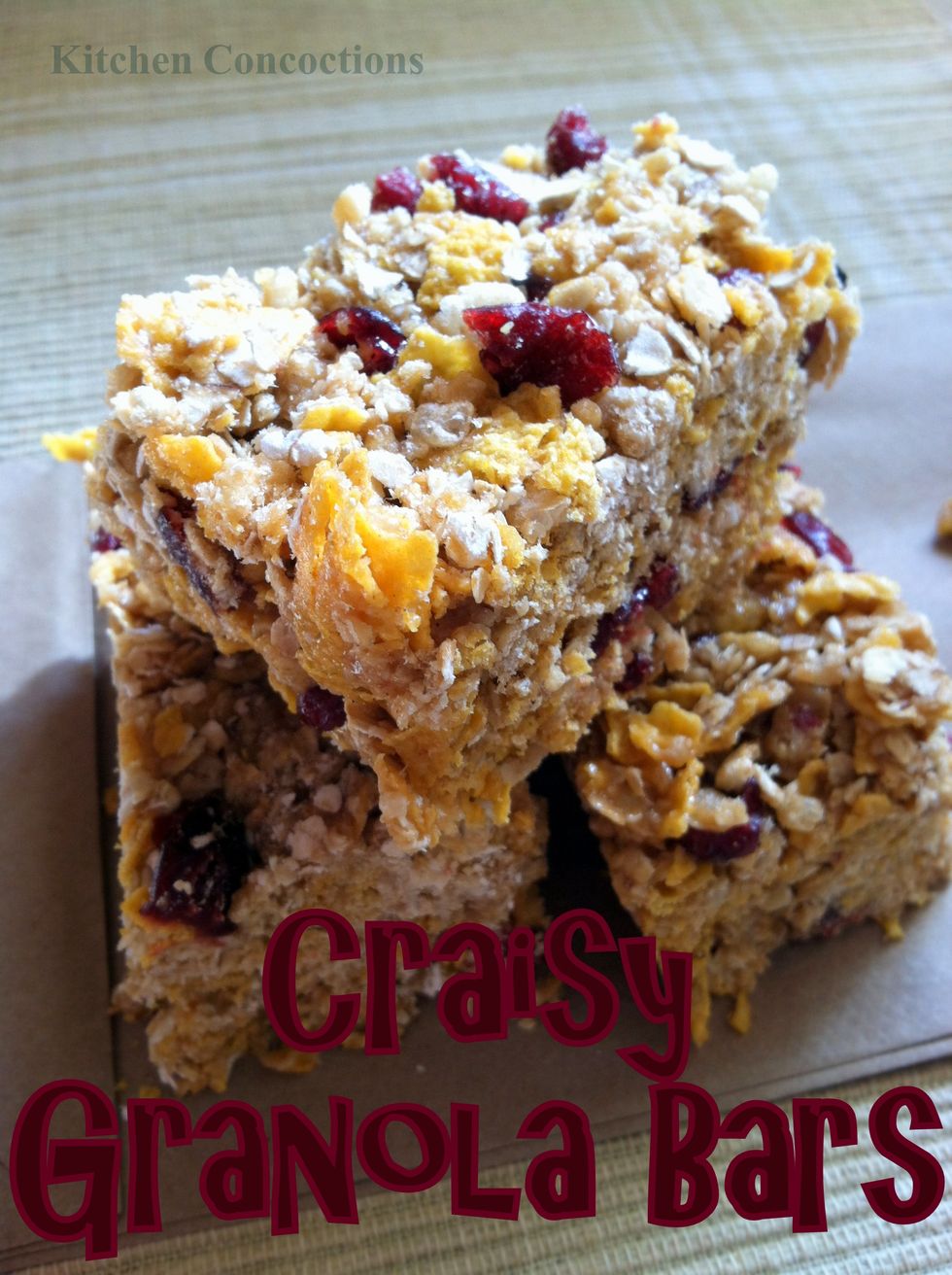 Made with ingredients such as craisins, peanut butter and old fashioned oats, this is sweet, fruity and crunchy granola bar that is perfect for breakfast, mid-day snack attacks or any other time!
