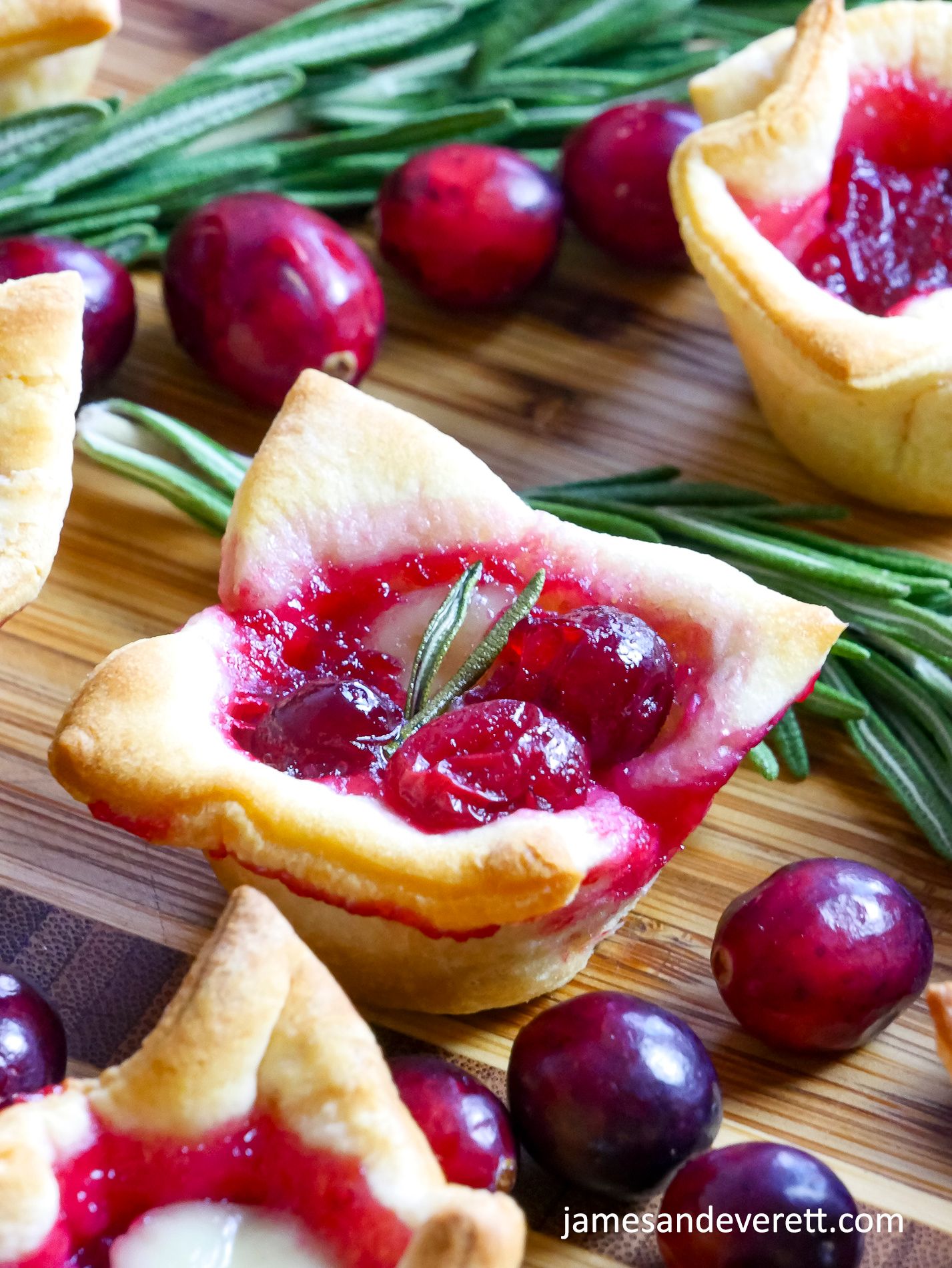 Creamy melted brie mingles with the tartness of cranberries in a golden pastry cup to create this festive holiday nibble. With just a few simple ingredients and a short amount of time these little bites will certainly surprise and delight your party guests.