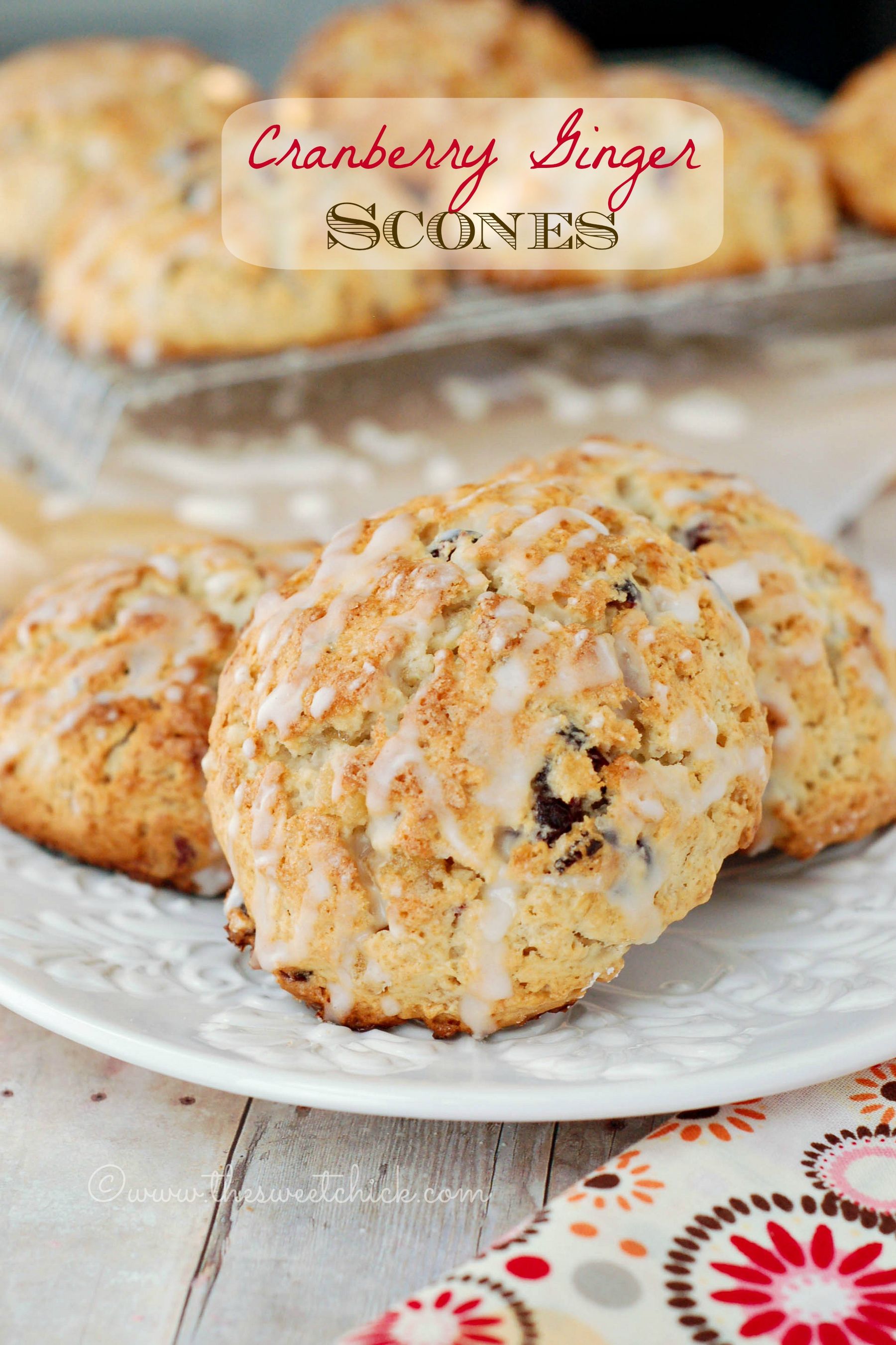 Scones sweetened with honey and filled with dried cranberries and ginger chips.