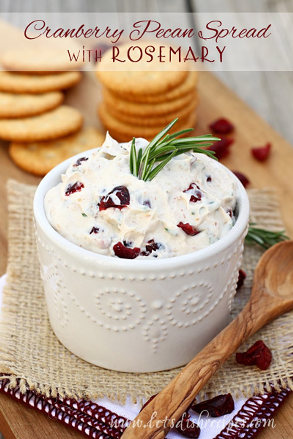 Cream cheese with cranberries, pecans, rosemary and a touch of honey.